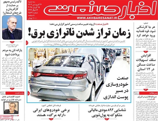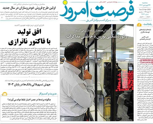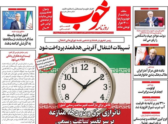 صفحه نخست روزنامههای سهشنبه ۲۶ فروردین ۱۴۰۴ را که به دو راهی تغییر ساعت رسمی، رمز ورود به بازارهای جهانی، جای خالی گزینش روانشناختی در آموزش و پرورش و مهمترین رویدادهای ورزشی پرداختهاند؛ در ادامه مشاهده میکنید.