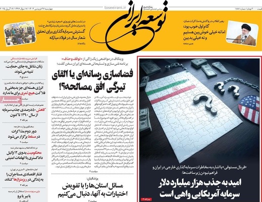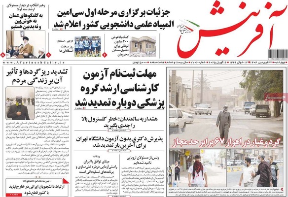 صفحه نخست روزنامههای چهارشنبه ۲۷ فروردین ۱۴۰۴ را که به فرمان به واقعبینی، نیمی از ایران زیر گرد و غبار، سد محکم برابر فساد و مهمترین رویدادهای ورزشی پرداختهاند؛ در ادامه مشاهده میکنید.