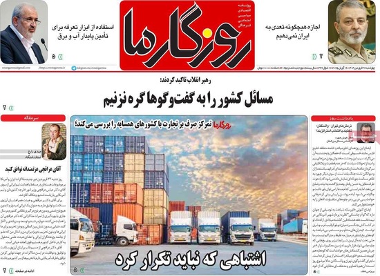 صفحه نخست روزنامههای دوشنبه ۵ آبان ۱۴۰۴