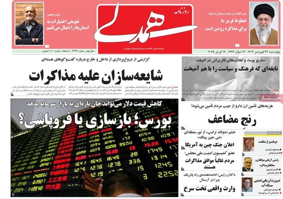 صفحه نخست روزنامههای چهارشنبه ۲۷ فروردین ۱۴۰۴