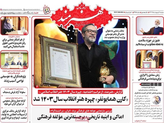 صفحه نخست روزنامههای سهشنبه ۶ آبان ۱۴۰۴