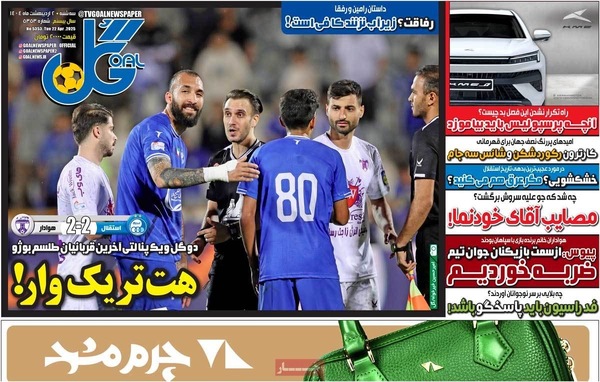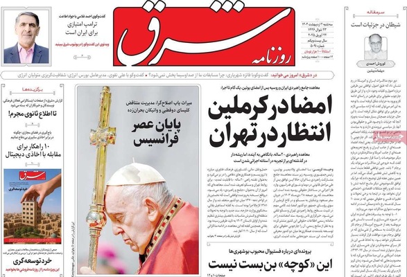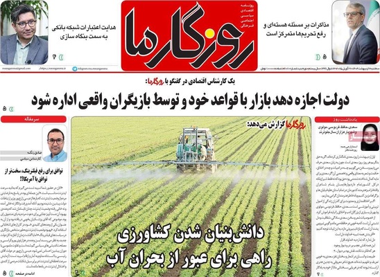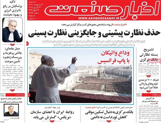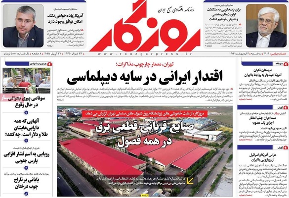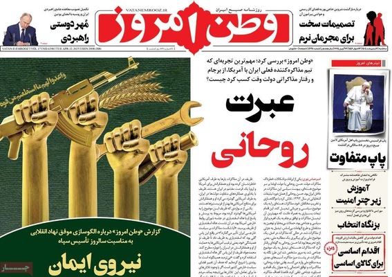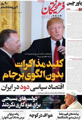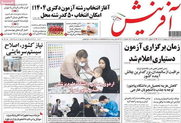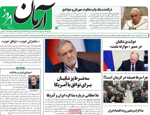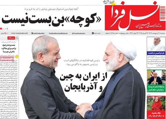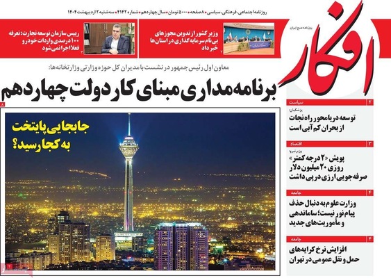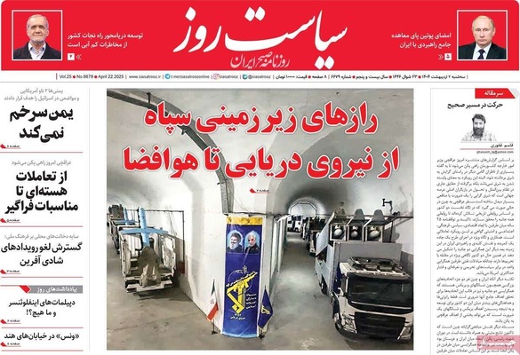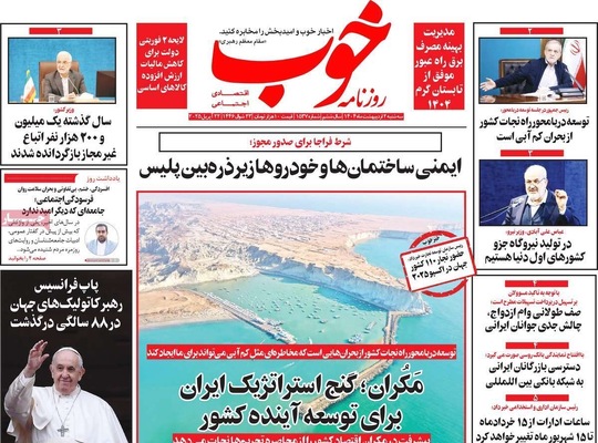 صفحه نخست روزنامههای سهشنبه ۲ اردیبهشت ۱۴۰۴ را که به سه شرط رئیس جمهور برای توافق با آمریکا، رازهای زیرزمینی سپاه، هوش مصنوعی ابزار توسعه ملی و مهمترین رویدادهای ورزشی پرداختهاند؛ در ادامه مشاهده میکنید.