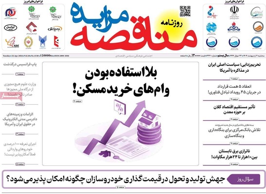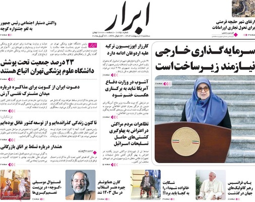 صفحه نخست روزنامههای سهشنبه ۲ اردیبهشت ۱۴۰۴