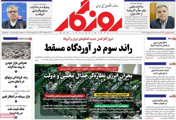 صفحه نخست روزنامه‌های شنبه ۶ اردیبهشت ۱۴۰۴