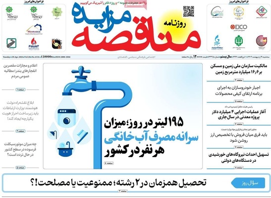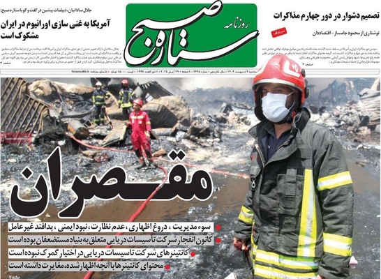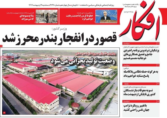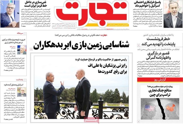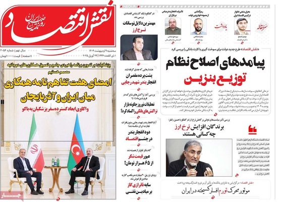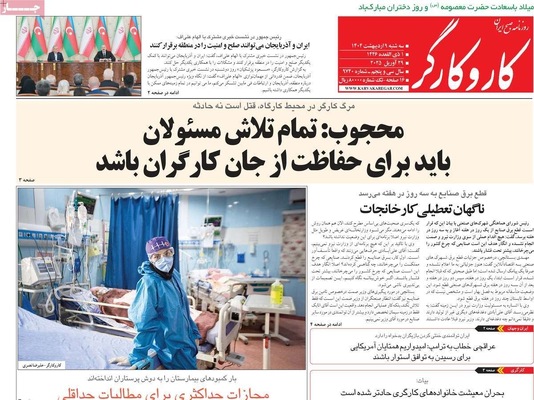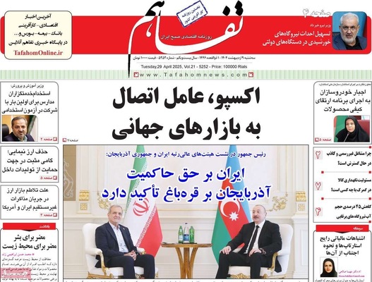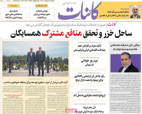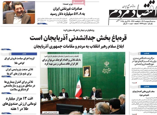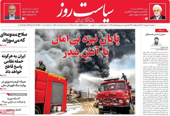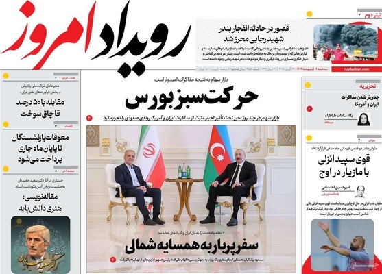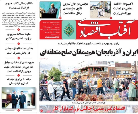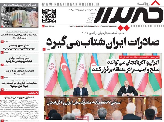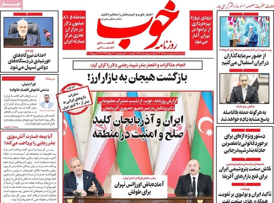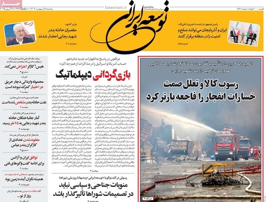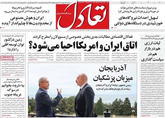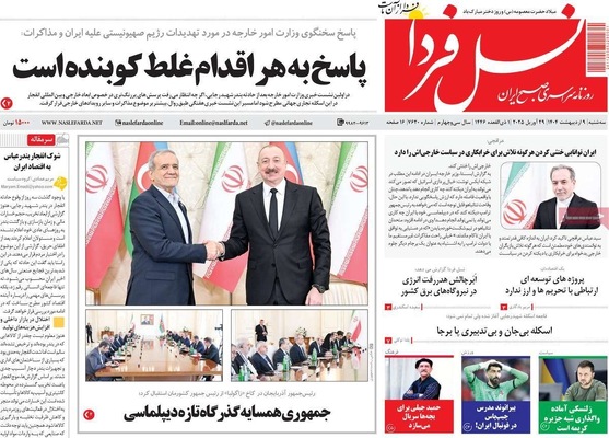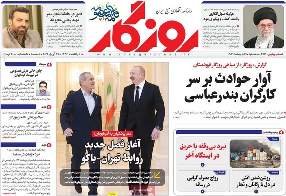 صفحه نخست روزنامههای سهشنبه ۹ اردیبهشت ۱۴۰۴ را که به عصر جدید روابط تهران و باکو، حضرت معصومه(س) معمار هویت دختر ایرانی، تعمد یا سهلانگاری در بندر و مهمترین رویدادهای ورزشی پرداختهاند؛ در ادامه مشاهده میکنید.