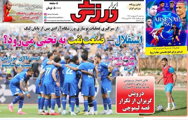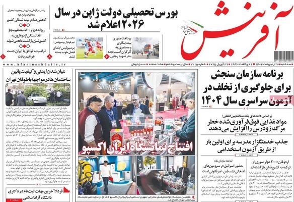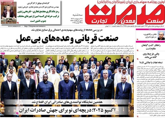 صفحه نخست روزنامههای سهشنبه ۹ اردیبهشت ۱۴۰۴