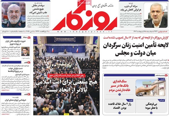 صفحه نخست روزنامههای دوشنبه ۱۵ اردیبهشت ۱۴۰۴