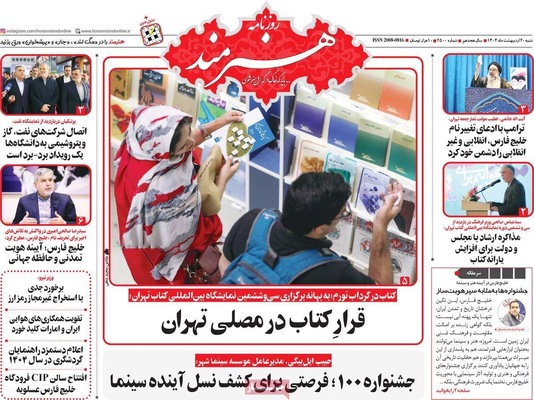 صفحه نخست روزنامههای شنبه ۲۰ اردیبهشت ۱۴۰۴ را که به ملت رضوی، تحریم عامل ناترازیها، خلیج تا ابد فارس و مهمترین رویدادهای ورزشی پرداختهاند؛ در ادامه مشاهده میکنید.