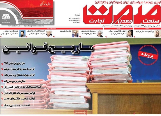 صفحه نخست روزنامههای شنبه ۲۰ اردیبهشت ۱۴۰۴