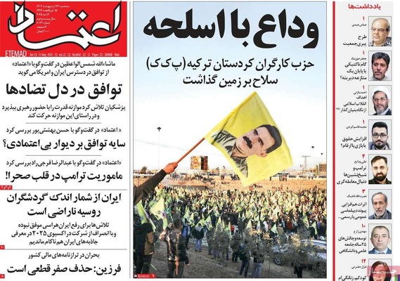 صفحه نخست روزنامههای سهشنبه ۲۳ اردیبهشت ۱۴۰۴ را که به انحلال تاریخی پ.ک.ک، گفتوگوی قم و نجف، کلید مذاکرات در تهران و مهمترین رویدادهای ورزشی پرداختهاند؛ در ادامه مشاهده میکنید.