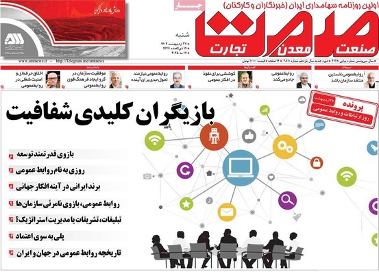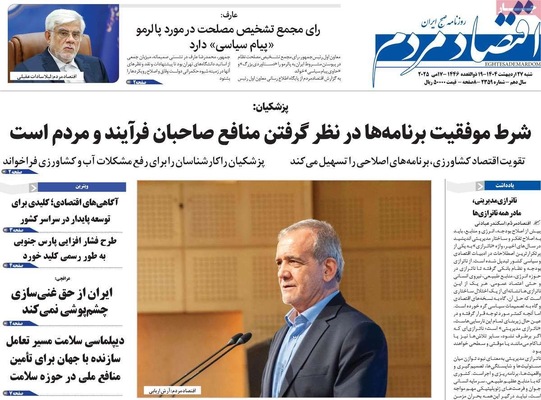 صفحه نخست روزنامههای شنبه ۲۷ اردیبهشت ۱۴۰۴