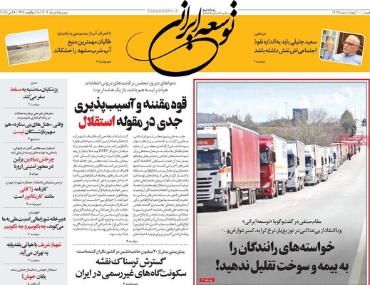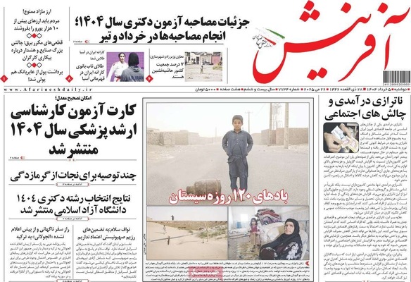 صفحه نخست روزنامههای سهشنبه ۶ آبان ۱۴۰۴