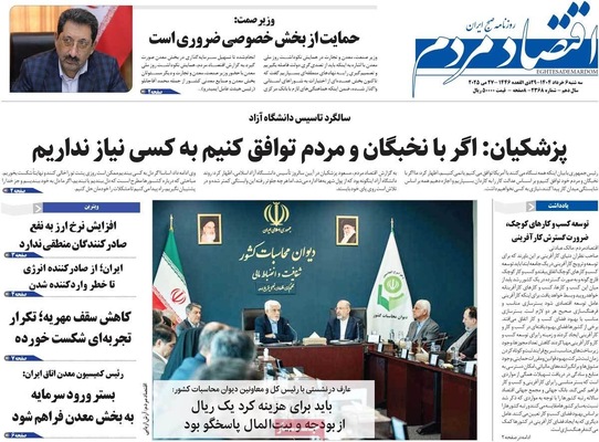 صفحه نخست روزنامههای سهشنبه ۶ خرداد ۱۴۰۴