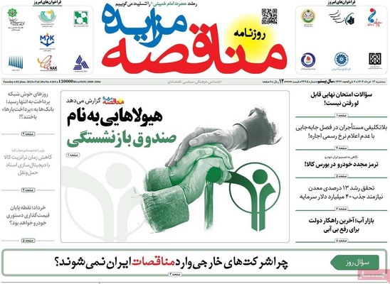 صفحه نخست روزنامههای سهشنبه ۱۳ خرداد ۱۴۰۴