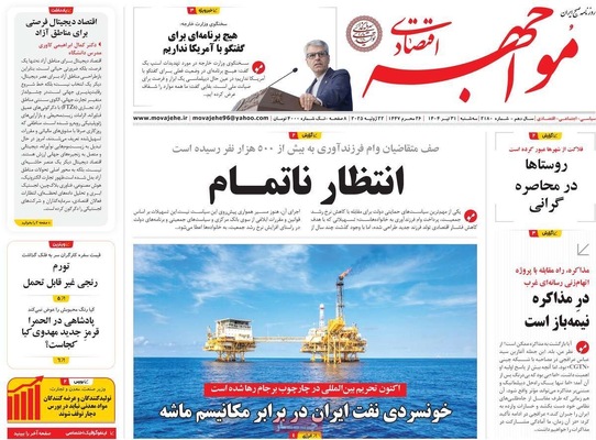 صفحه نخست روزنامههای سهشنبه ۶ آبان ۱۴۰۴