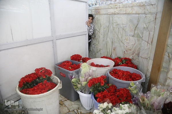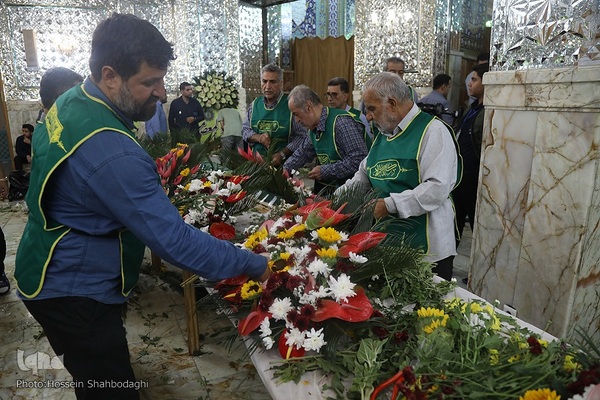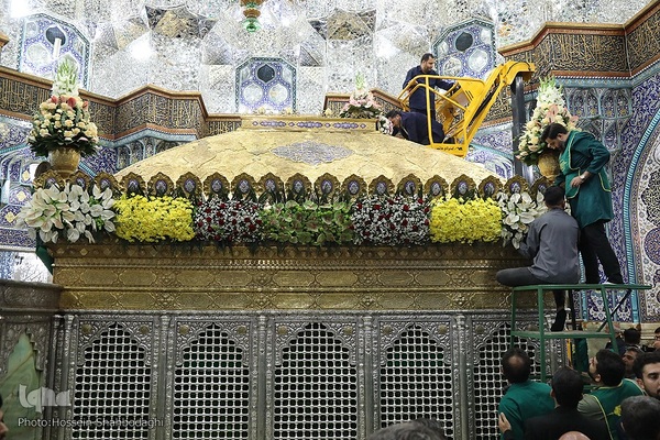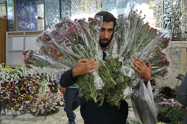 گل آرایی ضریح حضرت معصومه(س)
