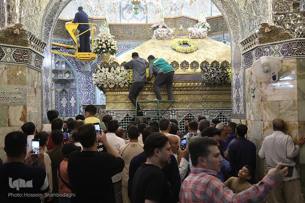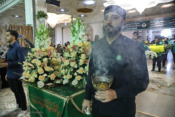 همزمان با فرا رسیدن سالروز ورود حضرت معصومه(س) به شهر قم، آیین گل آرایی ضریح مطهر کریمه اهل بیت(س) برگزار شد.