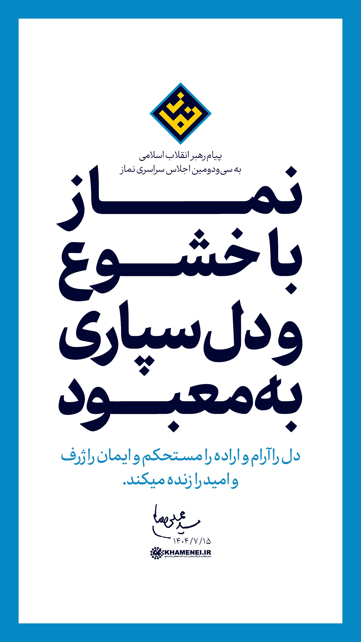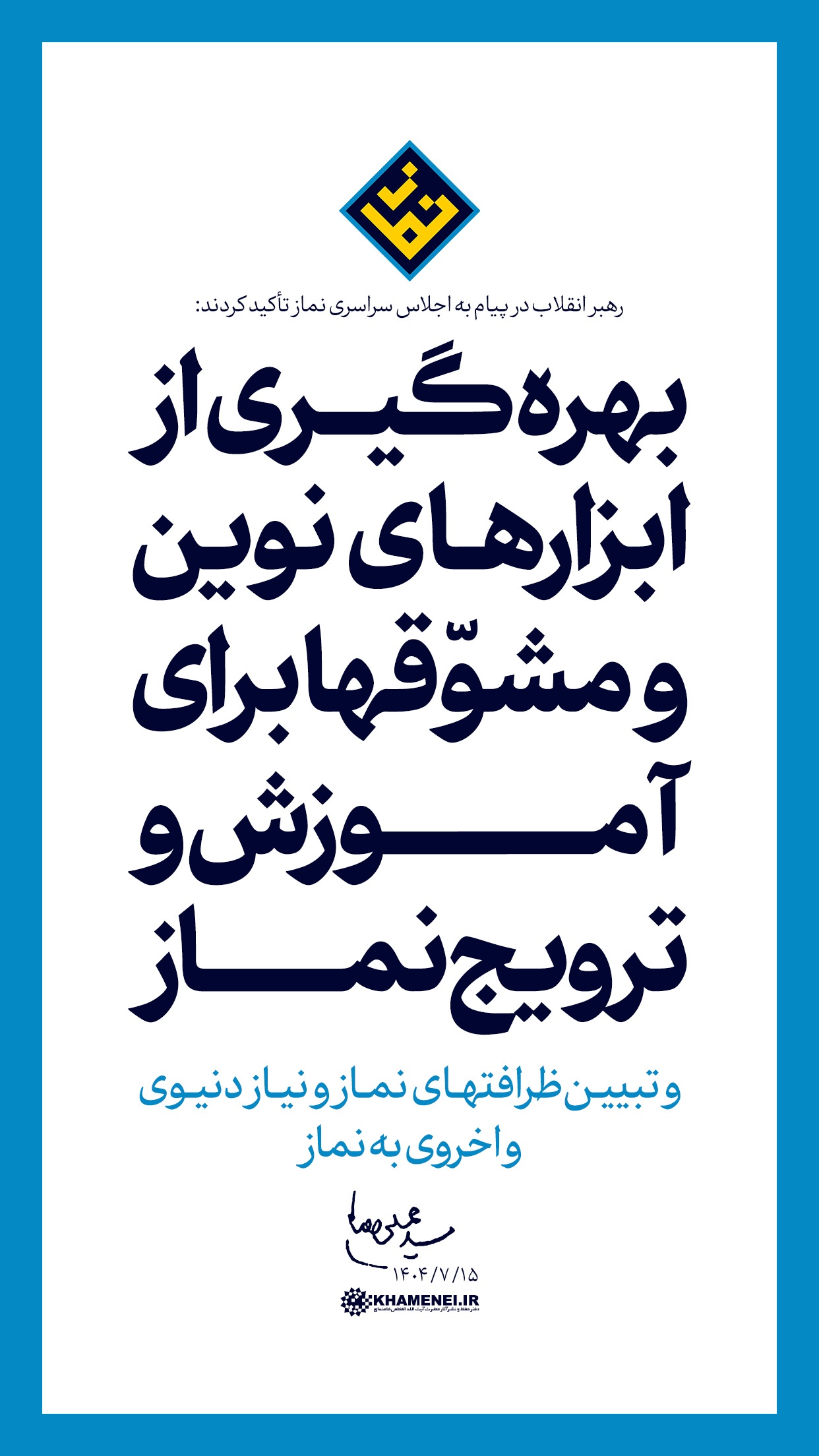 رهبر معظم انقلاب در پیامی به سی‌ودومین اجلاس سراسری نماز با اشاره به نقش فریضه‌ پرمعنا و حیات‌بخش نماز در سرنوشت انسان در دنیا و آخرت تأکید کردند: ترویج و آموزش نماز، تبیین ظرافت‌های باطن نماز و التزام به آن، تکلیف حتمی دستگاه‌های تبلیغ دین و رجال دینی و متدیّنین است که باید در این جهت از ابزارهای نوین بهره‌گیری شود.