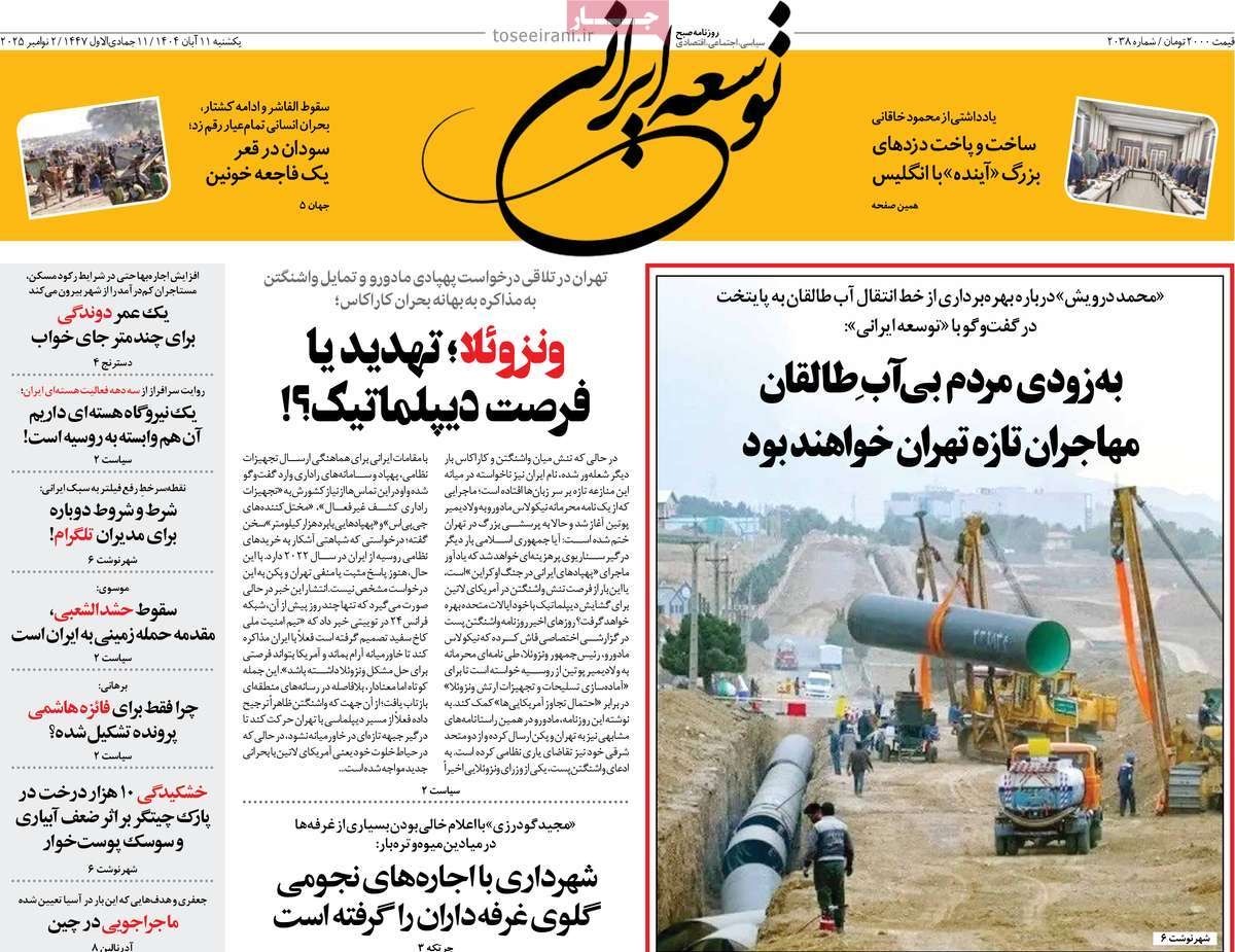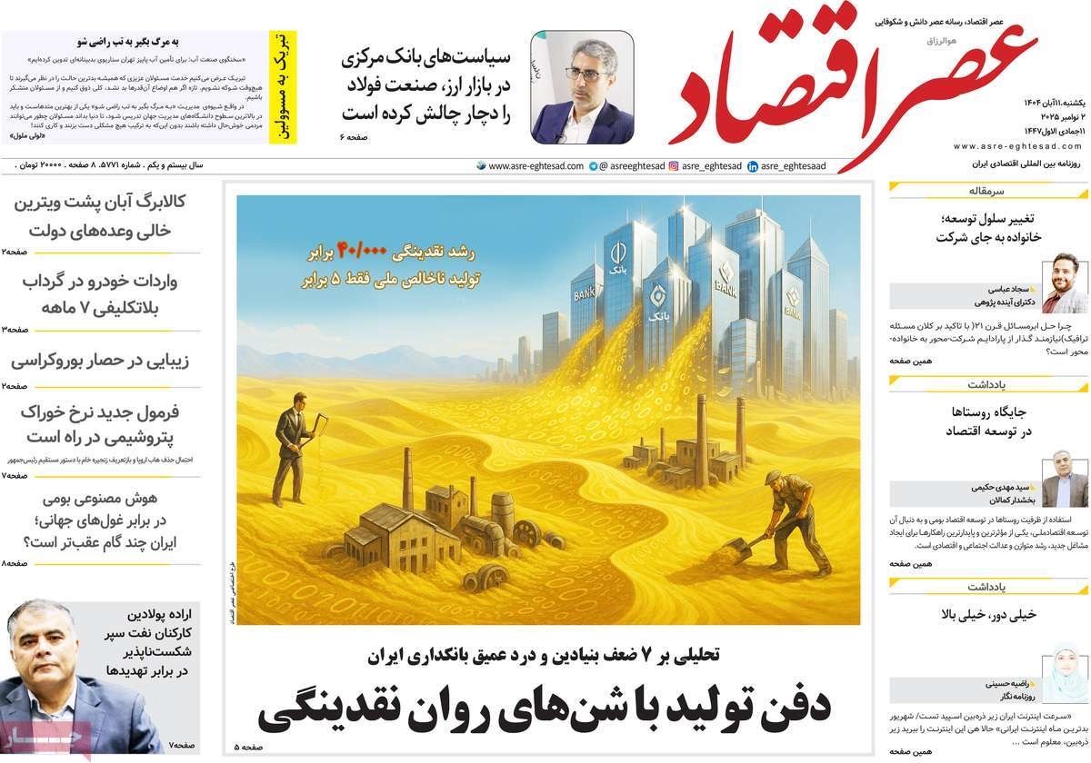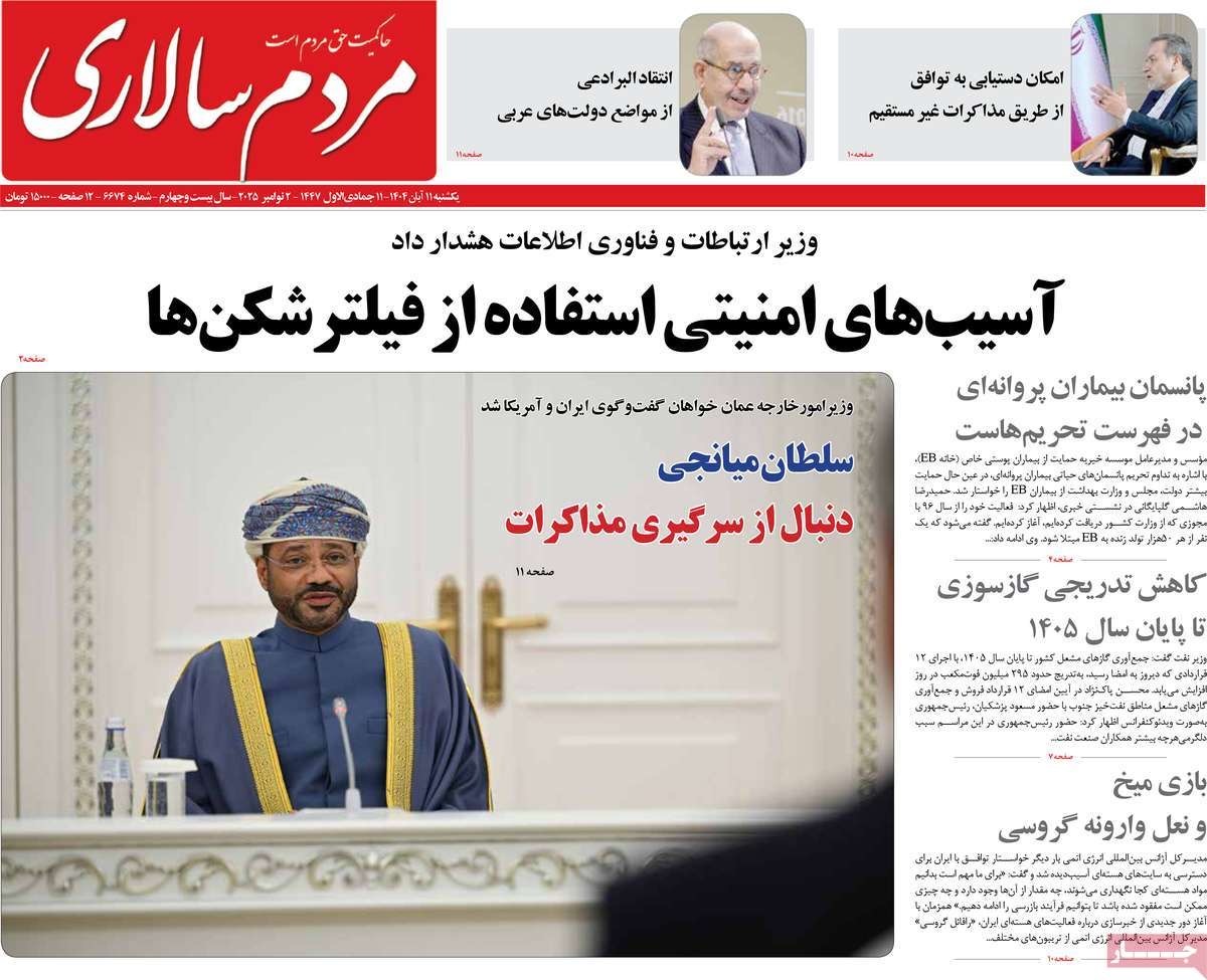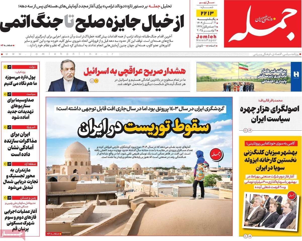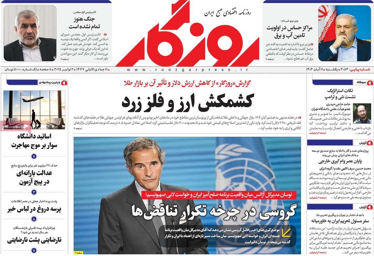 صفحه نخست روزنامههای یکشنبه ۱۱ آبان ۱۴۰۴