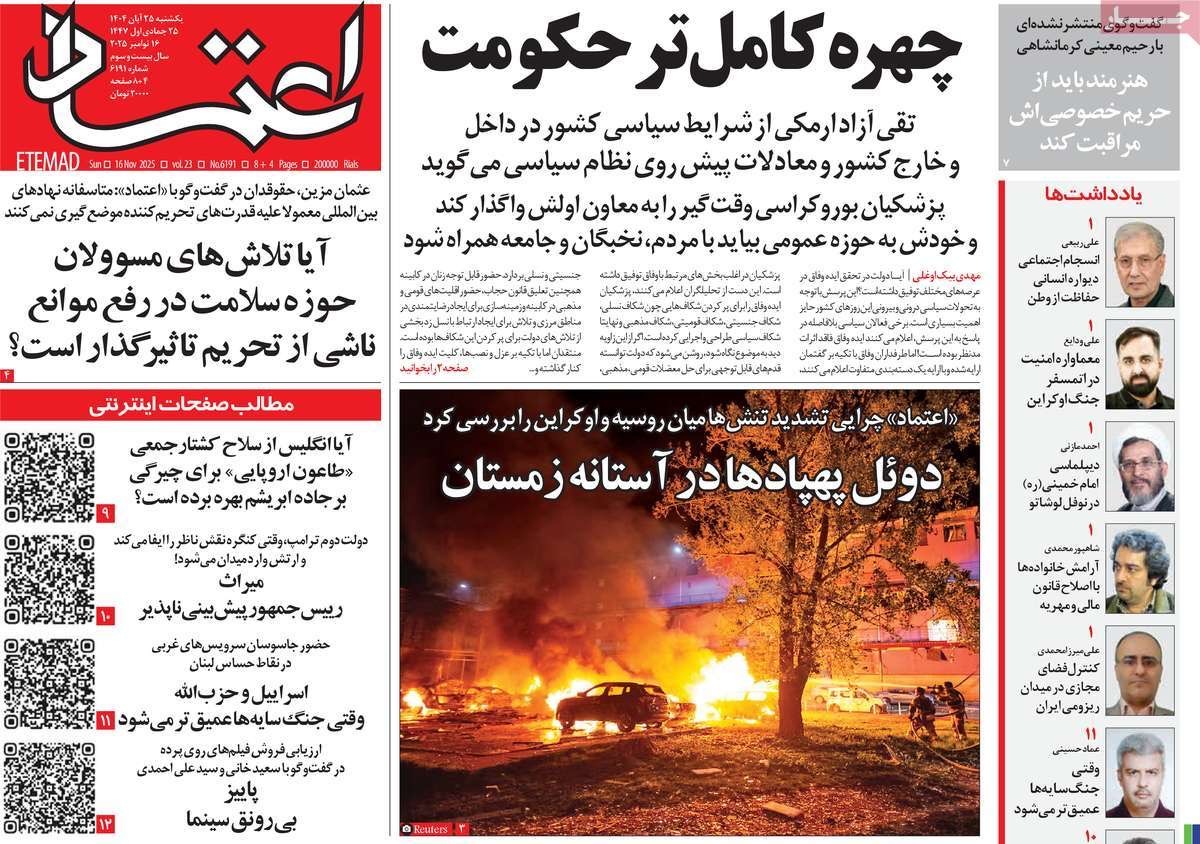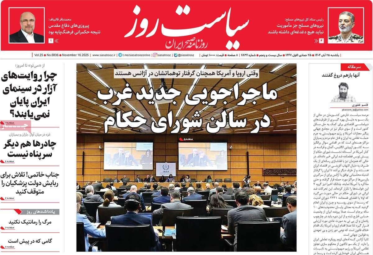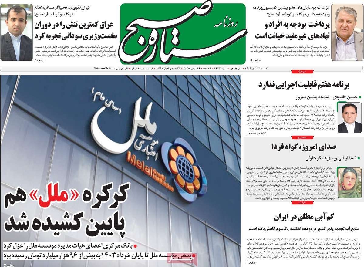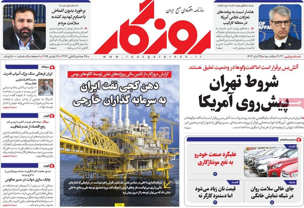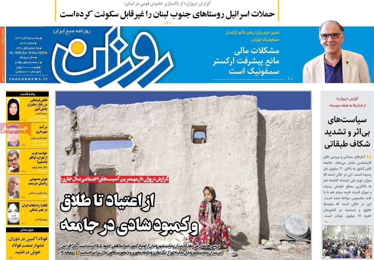 صفحه نخست روزنامههای یکشنبه ۲۵ آبان ۱۴۰۴