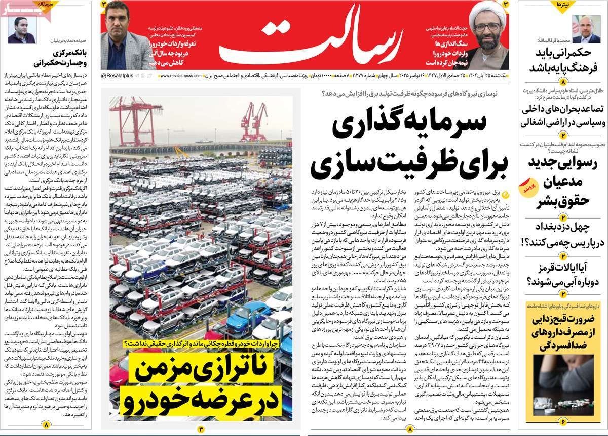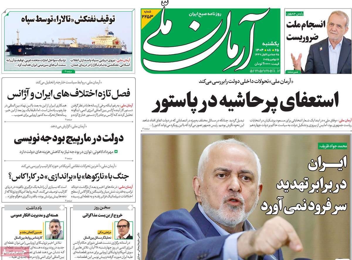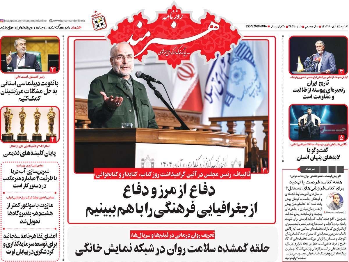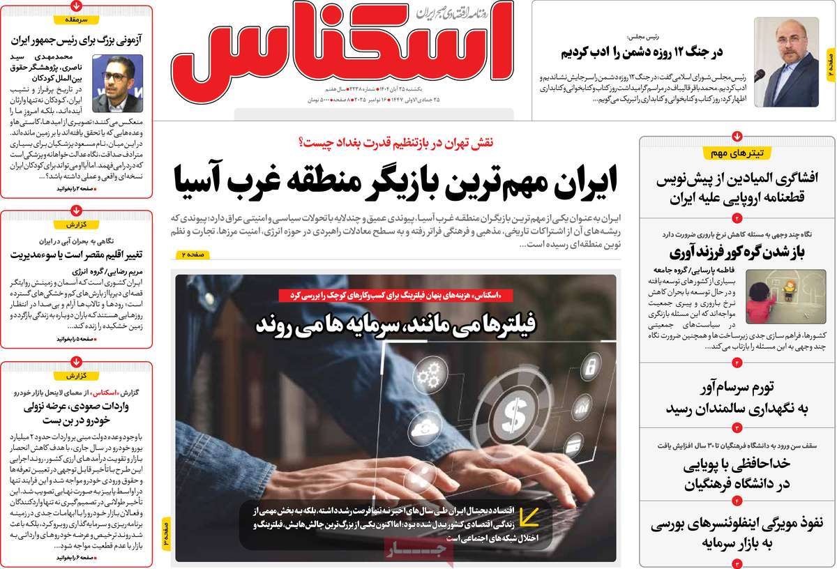 صفحه نخست روزنامههای یکشنبه ۲۵ آبان ۱۴۰۴