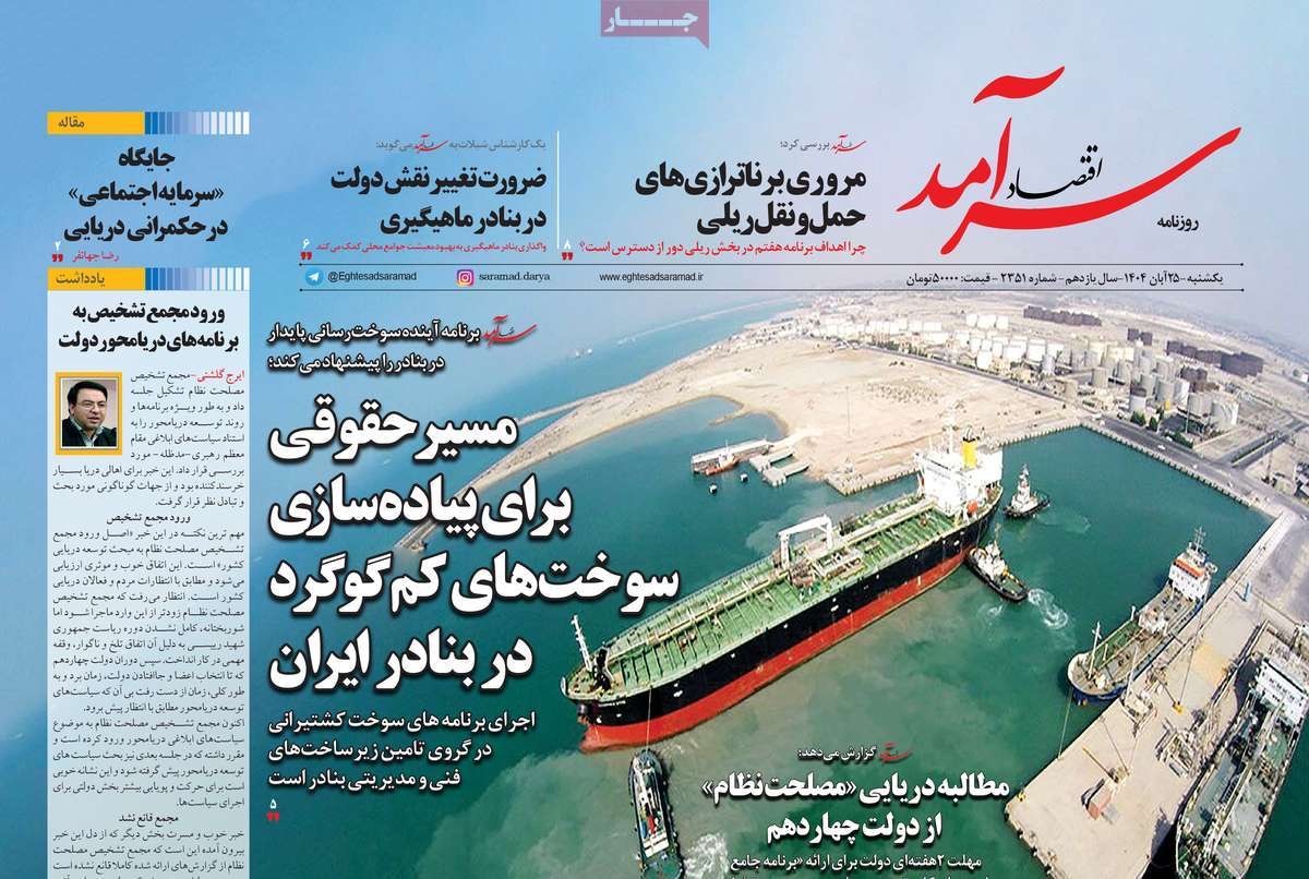 صفحه نخست روزنامههای شنبه ۲۴ آبان ۱۴۰۴