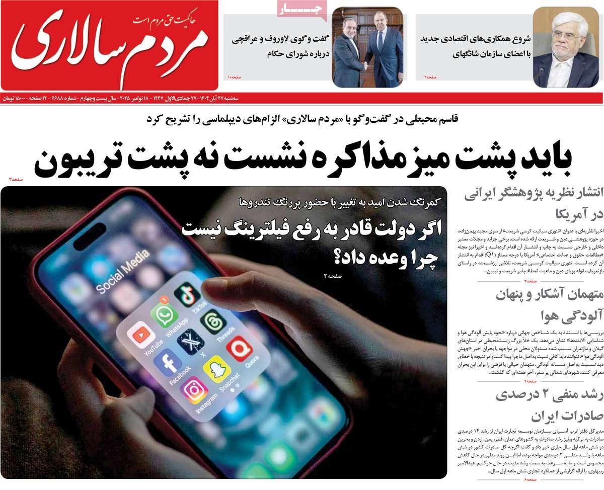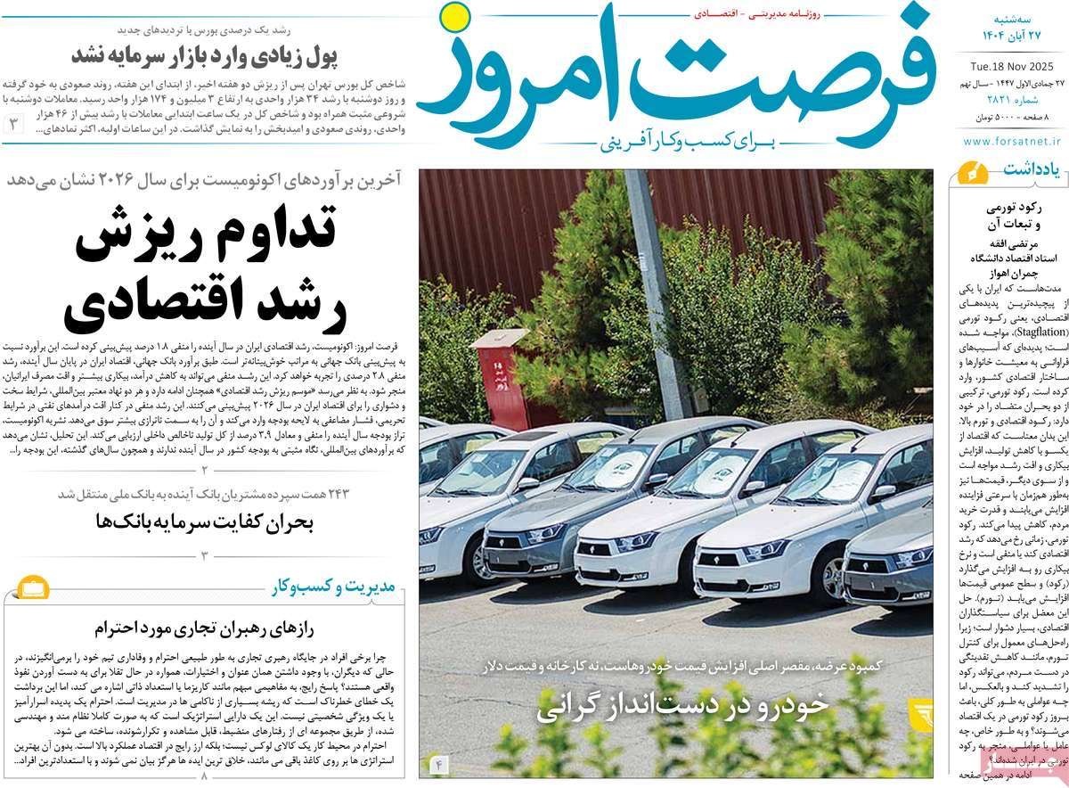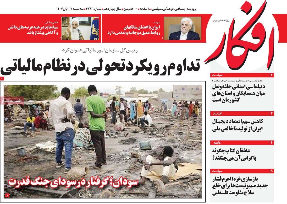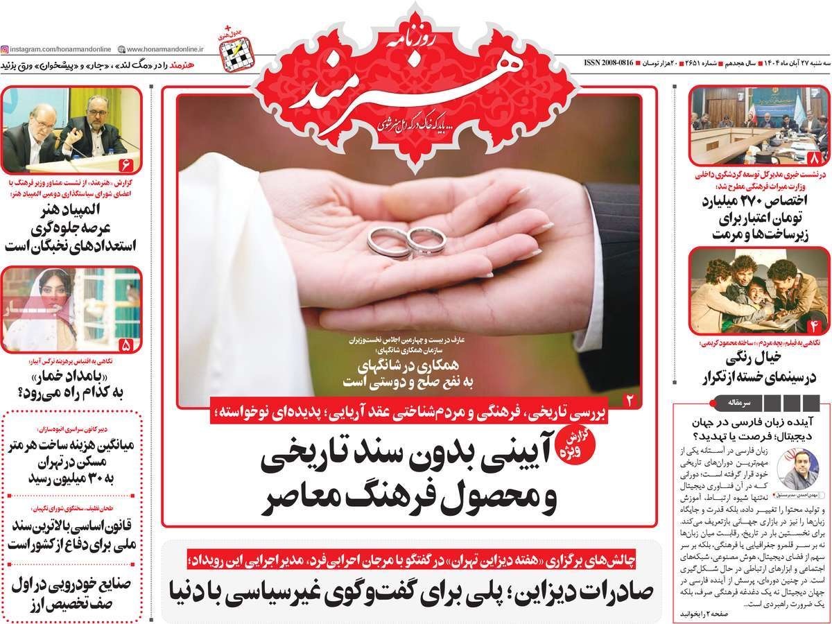 صفحه نخست روزنامههای سهشنبه ۲۷ آبان ۱۴۰۴