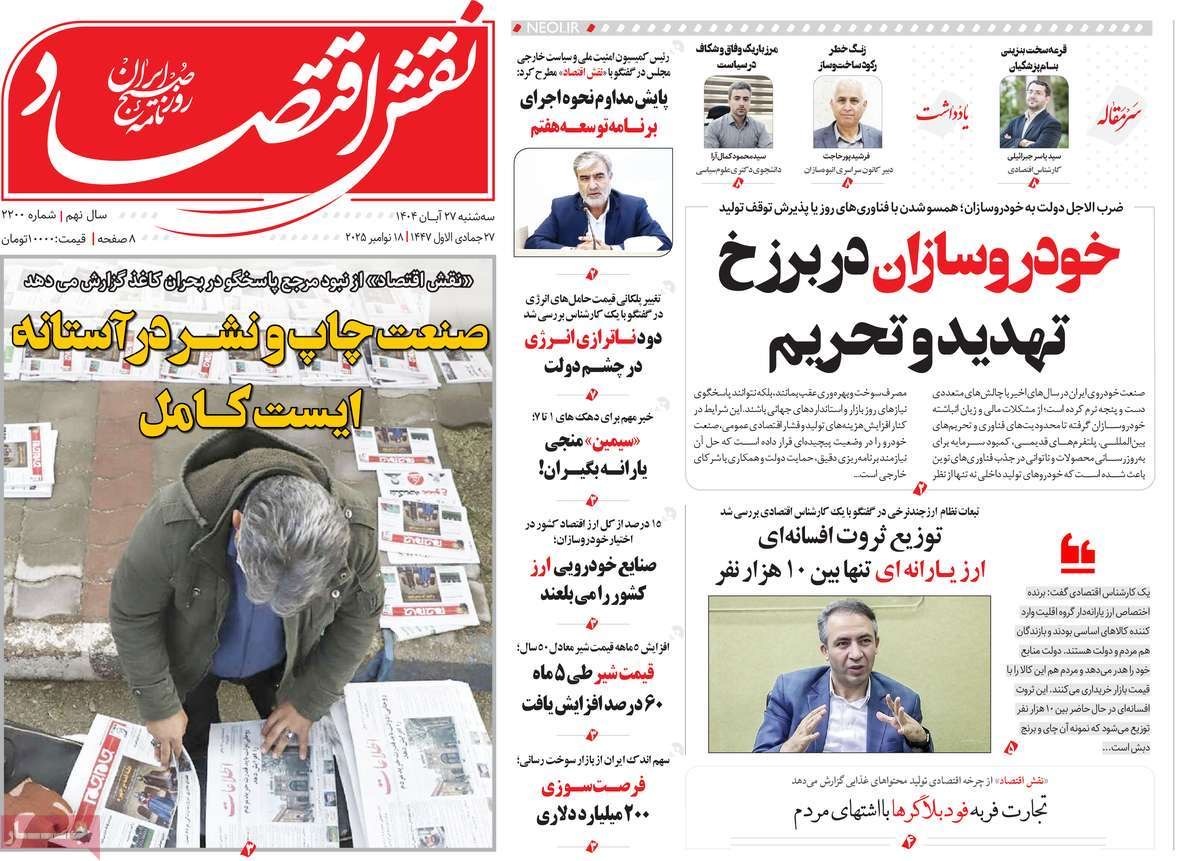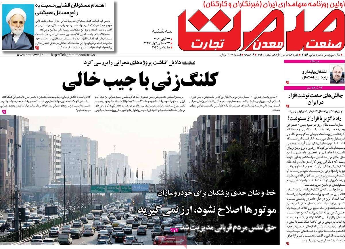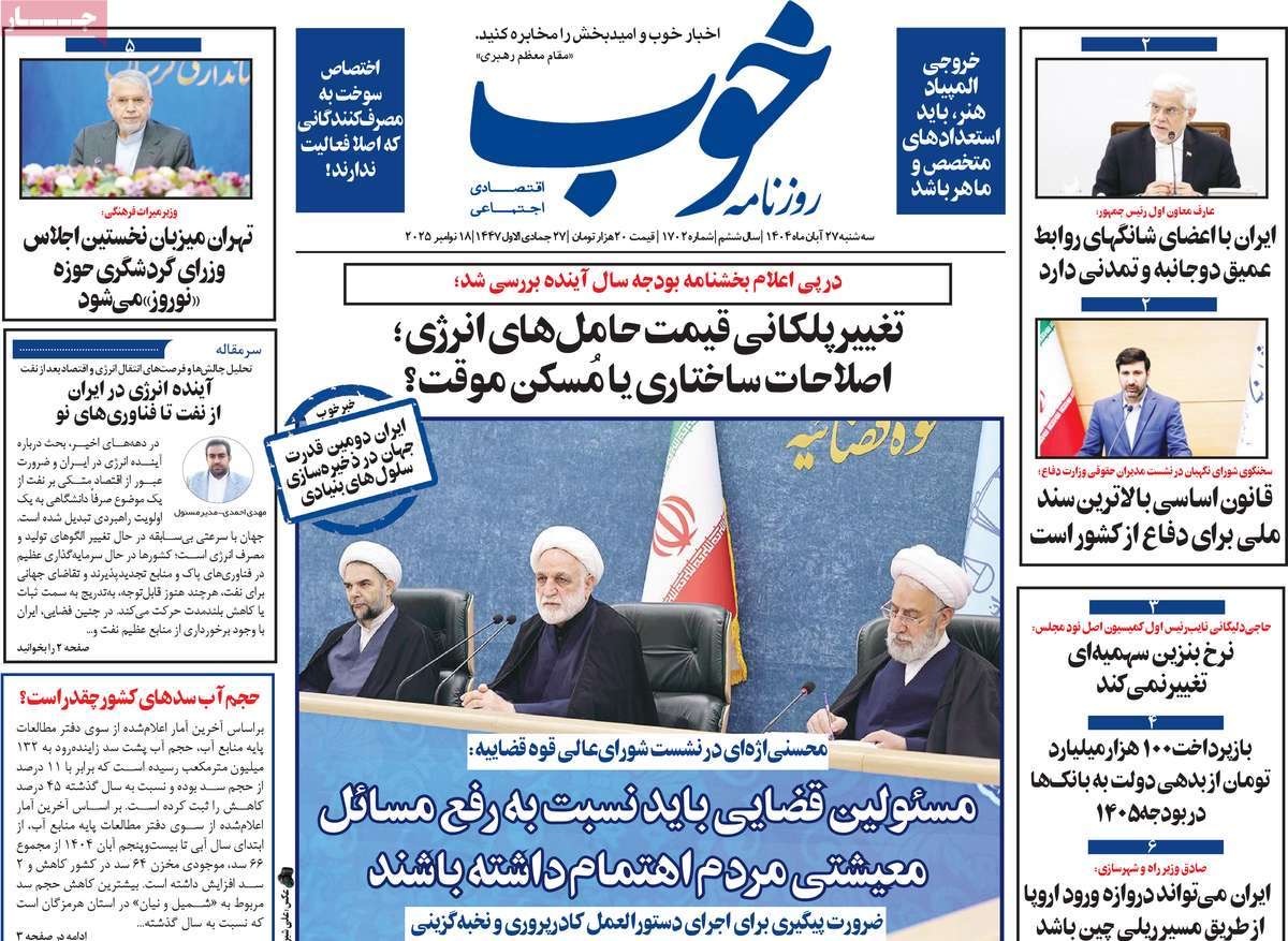 صفحه نخست روزنامههای سهشنبه ۲۷ آبان ۱۴۰۴ را که به مدیریت یکپارچه انرژی، اخطار به خودروسازان، مسئولیت ناپذیران و مهمترین رویدادهای ورزشی پرداختهاند؛ در ادامه مشاهده میکنید.