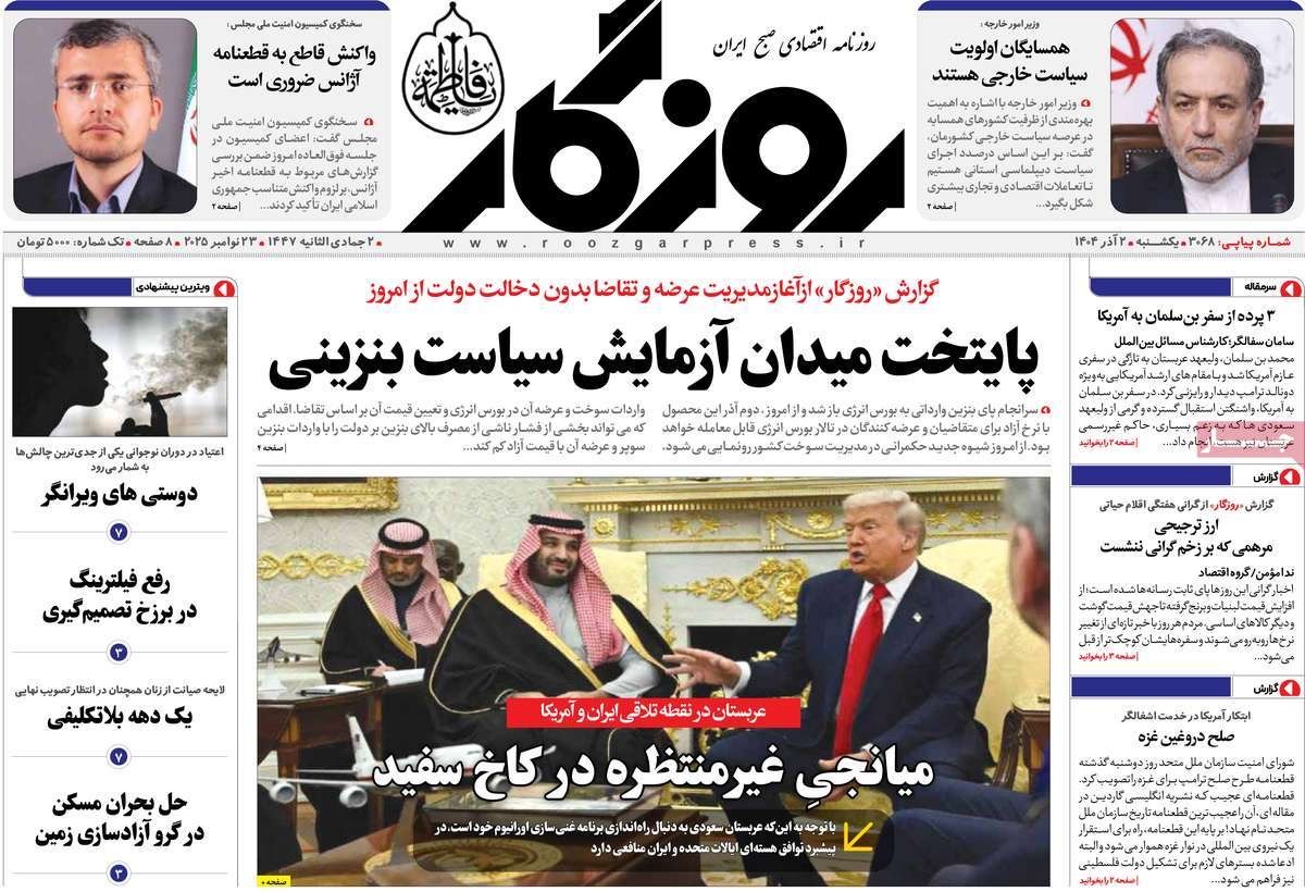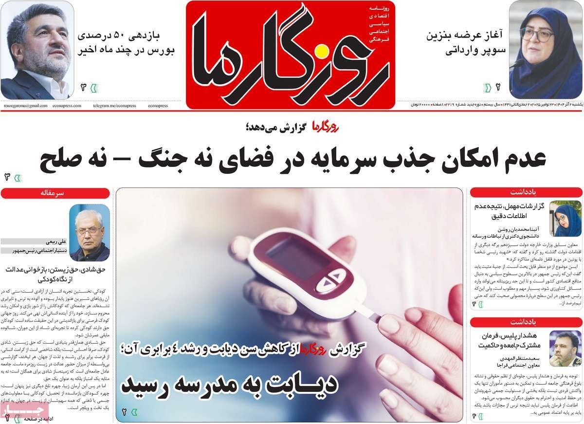صفحه نخست روزنامههای چهارشنبه ۲۶ آذر ۱۴۰۴