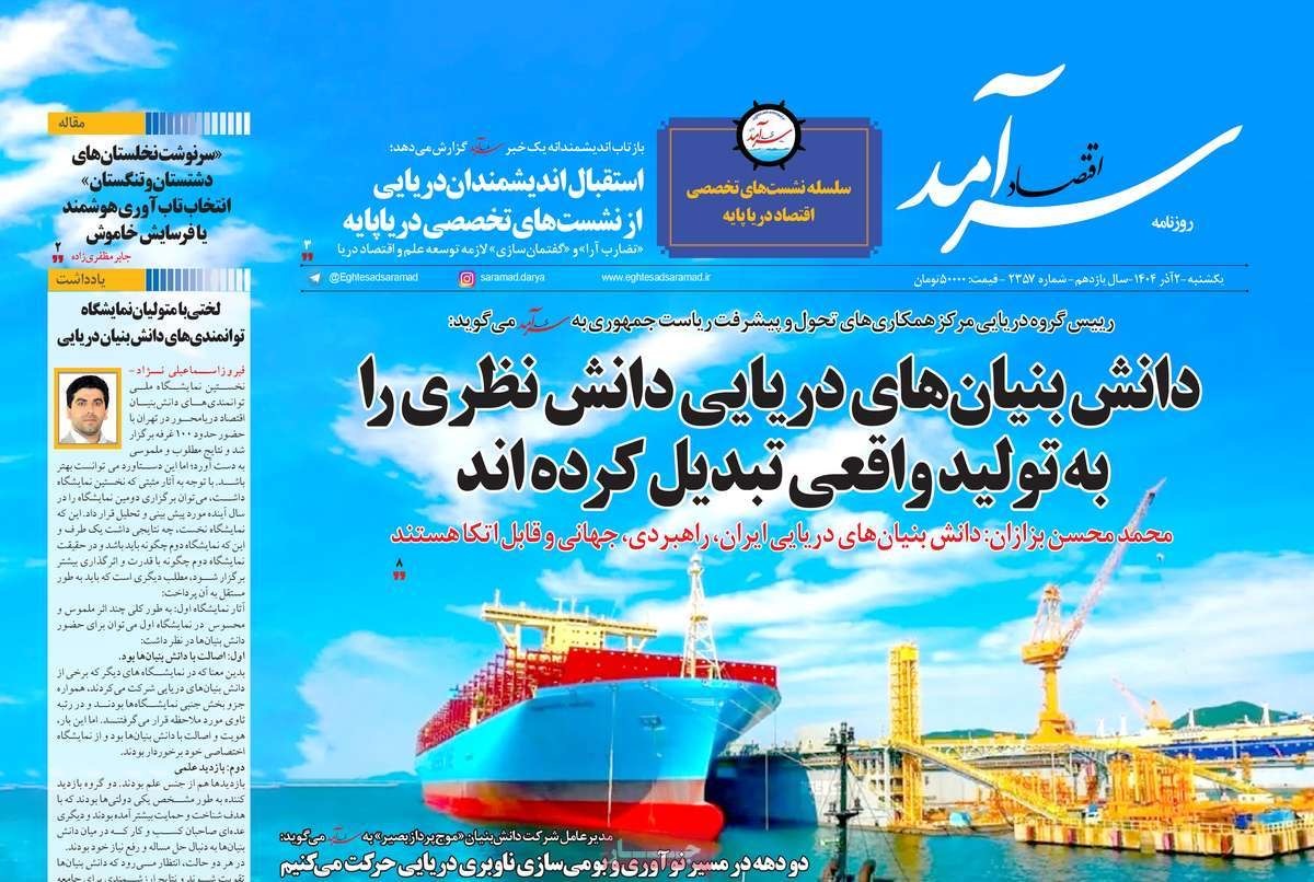 صفحه نخست روزنامههای یکشنبه ۲ آذر ۱۴۰۴