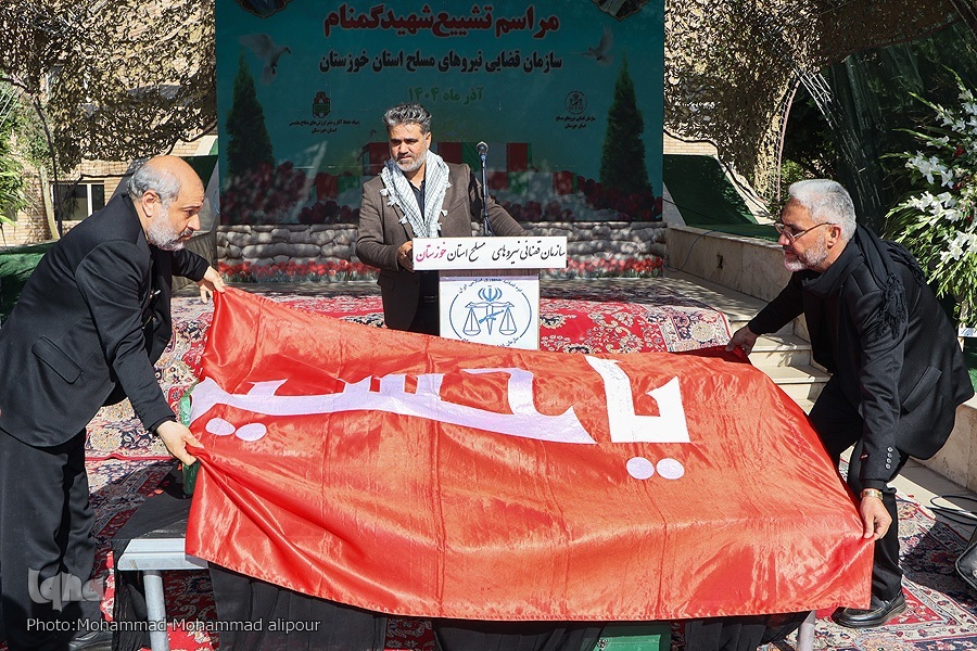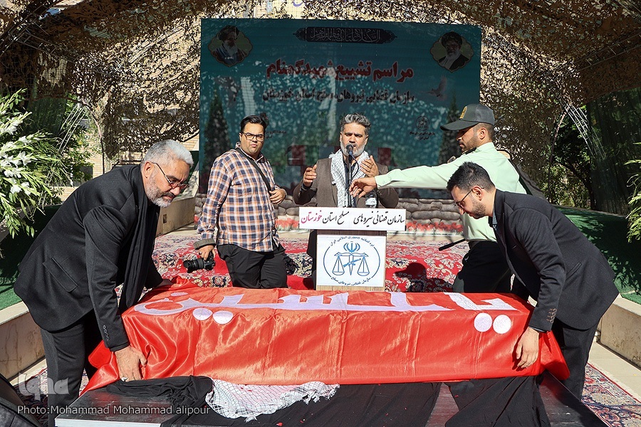 همزمان با سالروز شهادت حضرت فاطمه(س) مراسم تشییع و خاکسپاری شهید گمنام در سازمان قضایی نیروهای مسلح خوزستان برگزار شد.