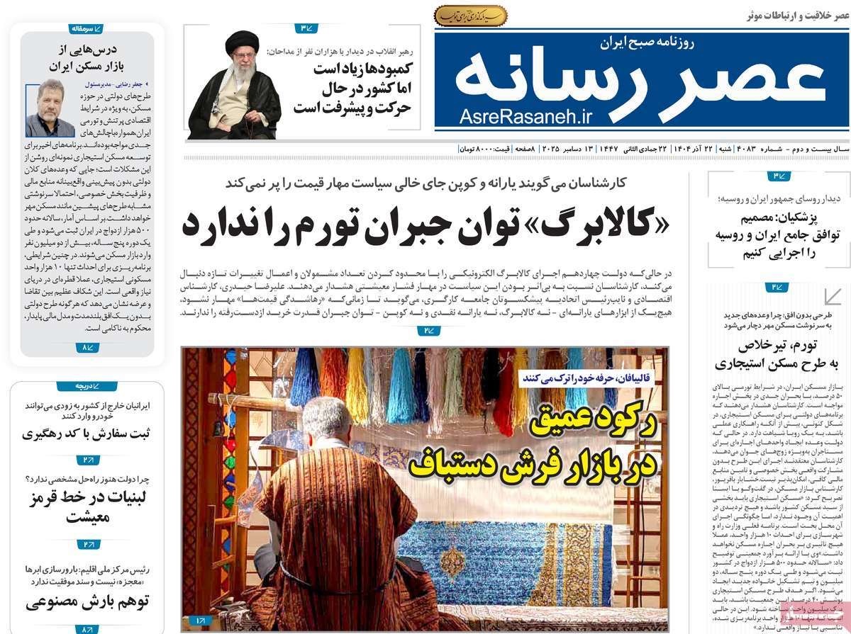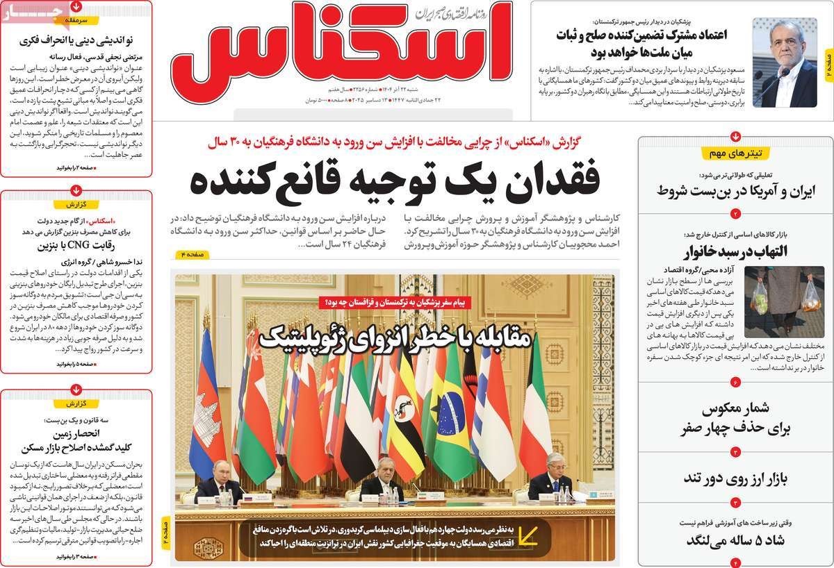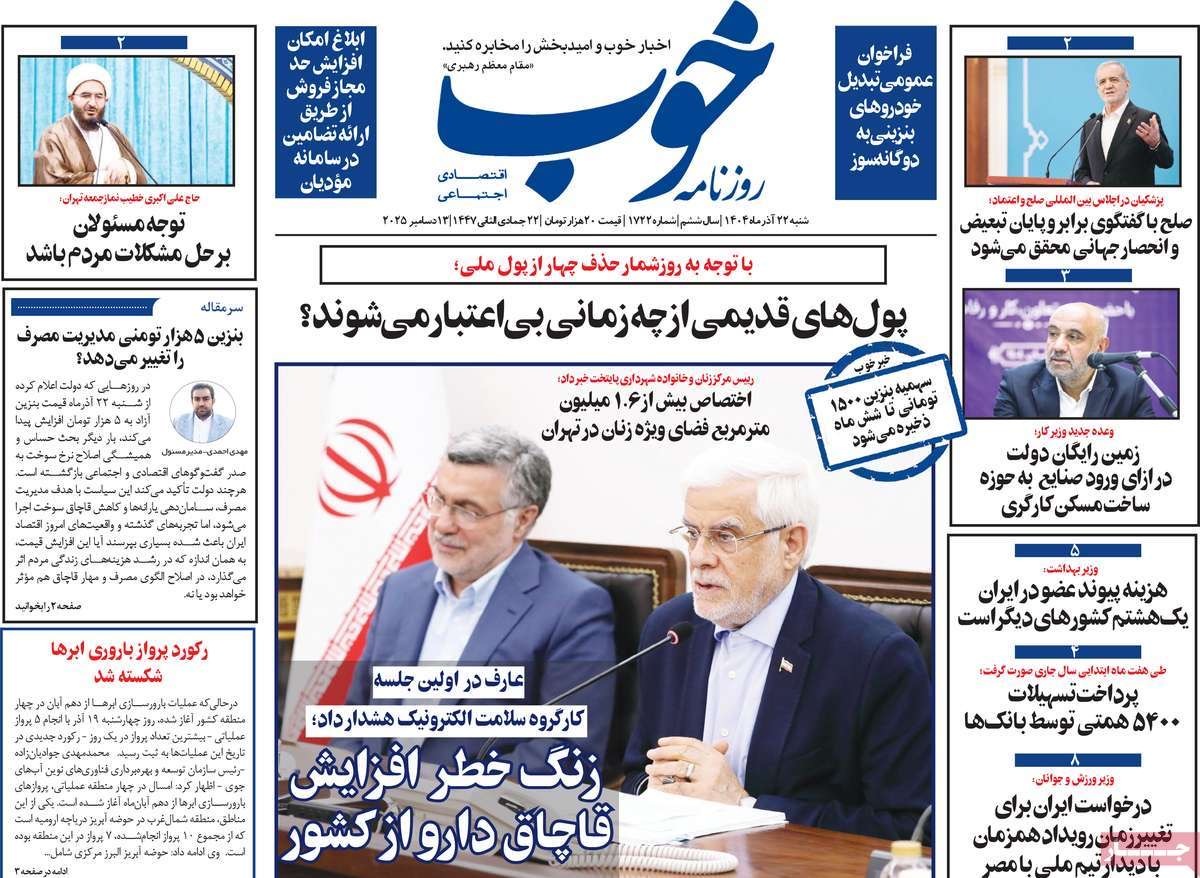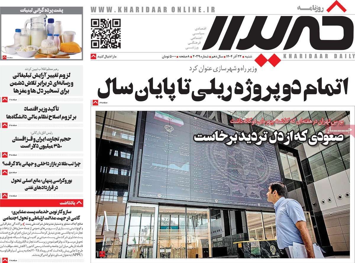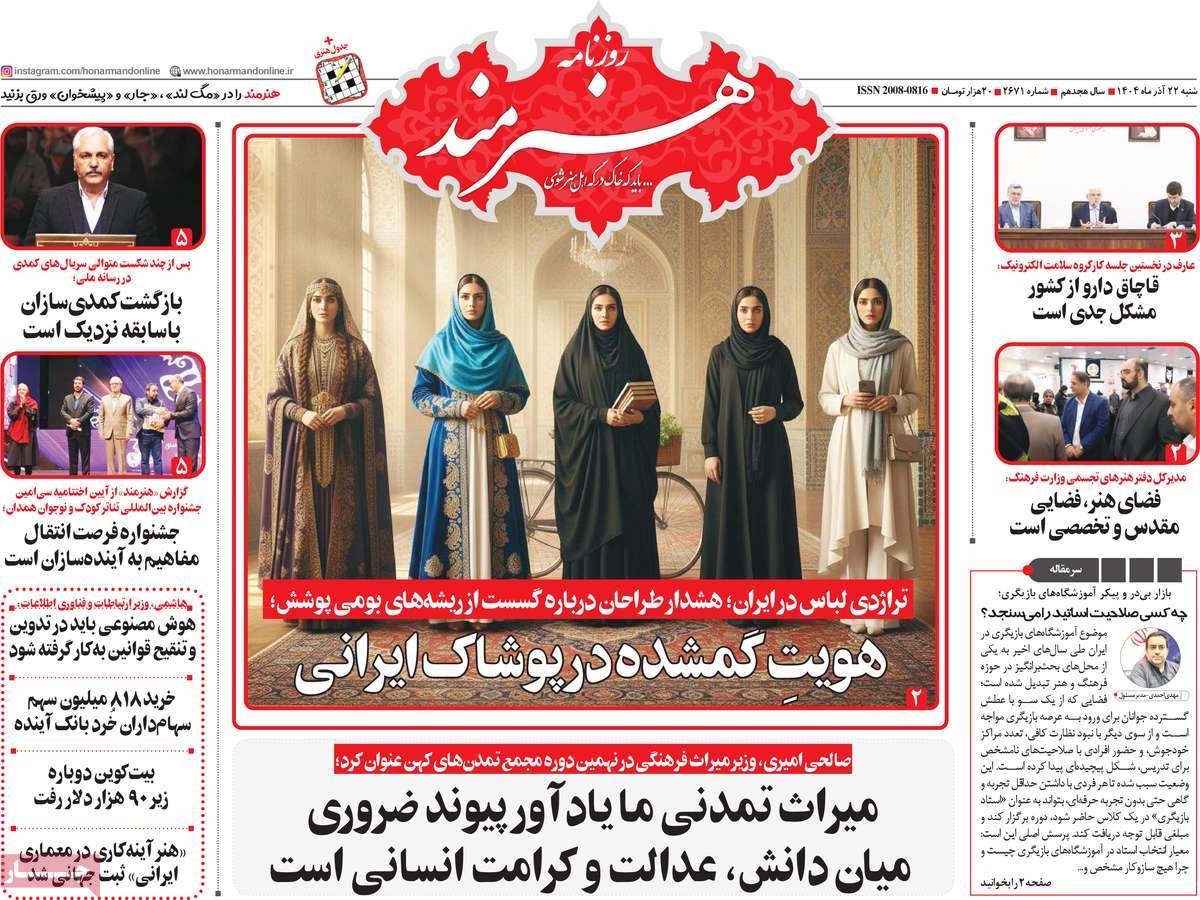 صفحه نخست روزنامههای شنبه ۲۲ آذر ۱۴۰۴