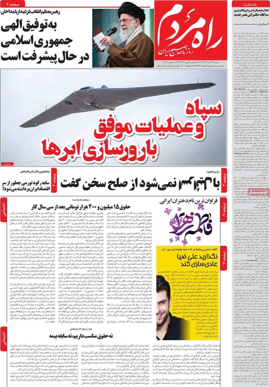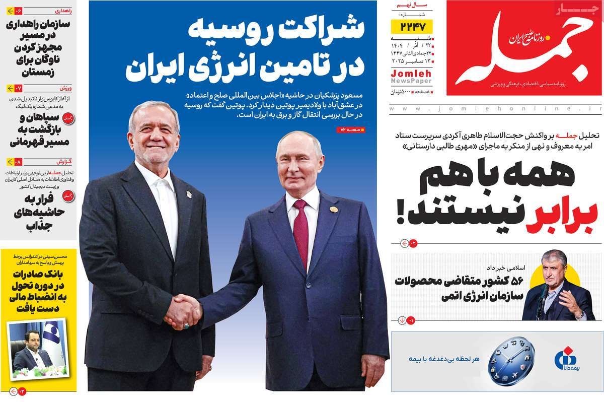 صفحه نخست روزنامههای شنبه ۲۲ آذر ۱۴۰۴ را که به نقشه راه آرایش رسانهای از سوی رهبر انقلاب، بانوان ستون توسعه پایدار، وعده روسیه برای حمایت از ایران و مهمترین رویدادهای ورزشی پرداختهاند؛ در ادامه مشاهده میکنید.