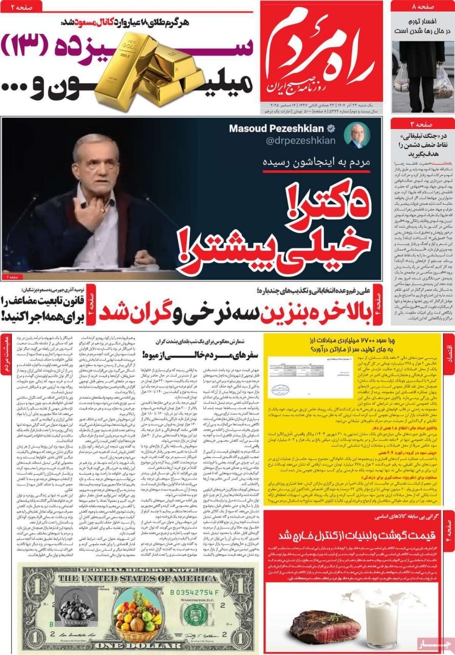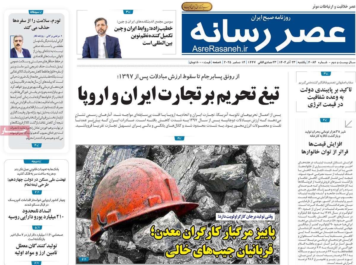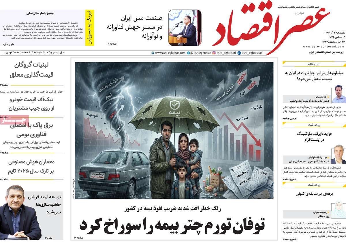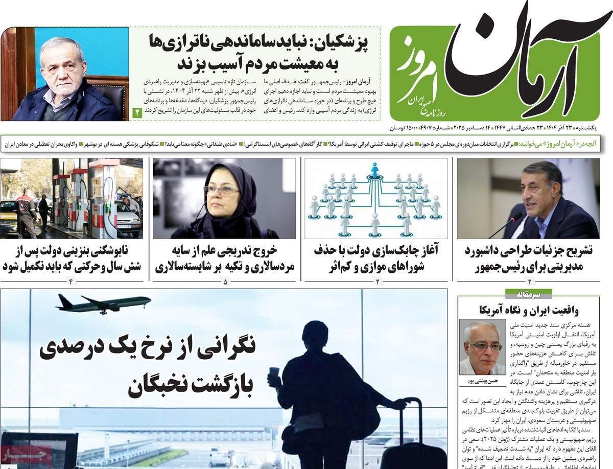 صفحه نخست روزنامههای یکشنبه ۲۳ آذر ۱۴۰۴