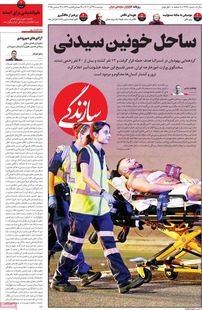 صفحه نخست روزنامههای دوشنبه ۲۴ آذر ۱۴۰۴ را که به سایه یلدای گرانی بر سر مردم، کارد بیپولی در استخوان، ساحل خونین سیدنی و مهمترین رویدادهای ورزشی پرداختهاند؛ در ادامه مشاهده میکنید.