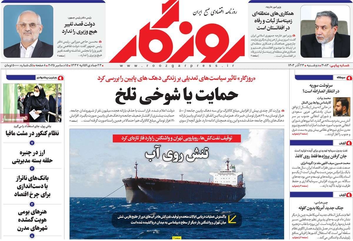 صفحه نخست روزنامههای دوشنبه ۲۴ آذر ۱۴۰۴