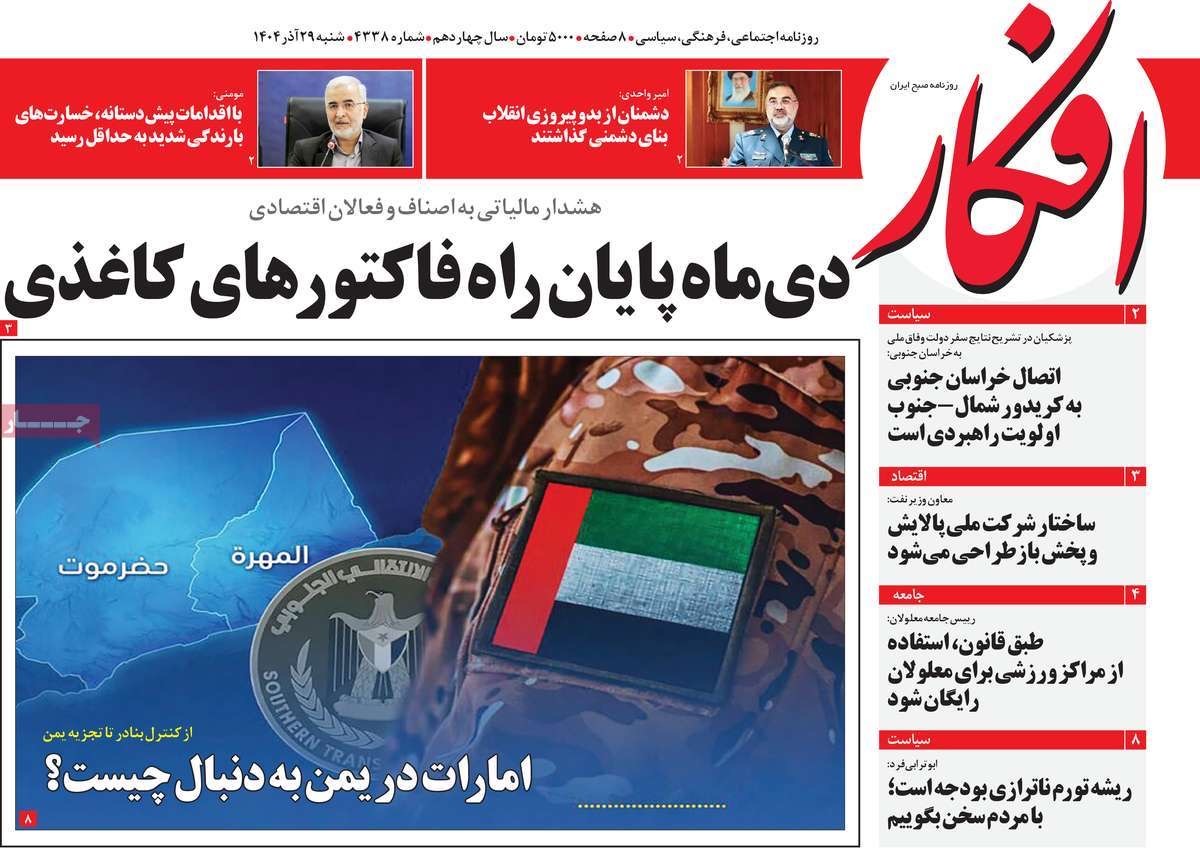 صفحه نخست روزنامههای شنبه ۲۹ آذر ۱۴۰۴