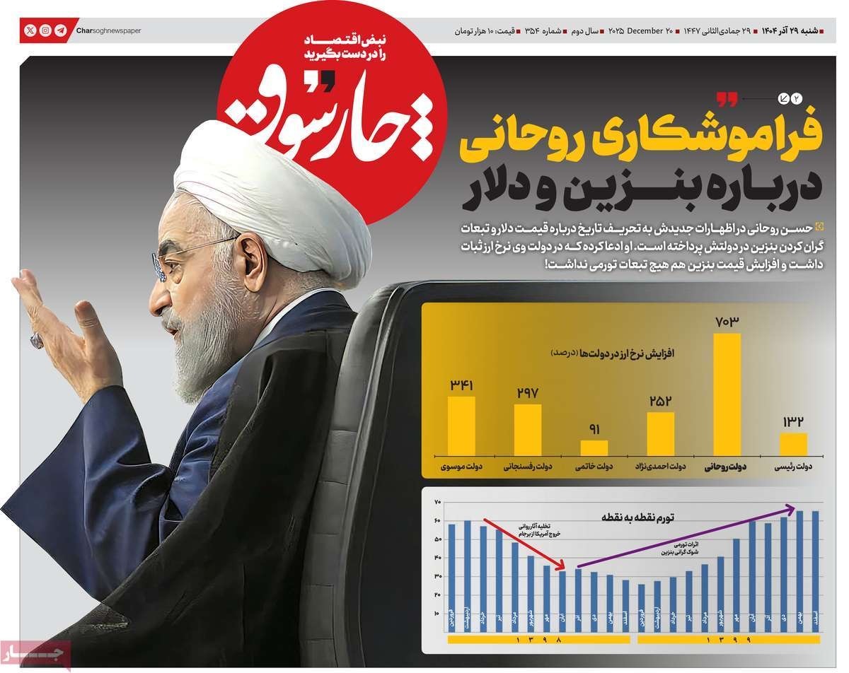 صفحه نخست روزنامههای شنبه ۲۹ آذر ۱۴۰۴ را که به رکوردشکنی بارش در جنوب کشور، رویکرد ترمیمی دولت چهاردهم، مزد و معیشت فاصله زمین تا آسمان و مهمترین رویدادهای ورزشی پرداختهاند؛ در ادامه مشاهده میکنید.