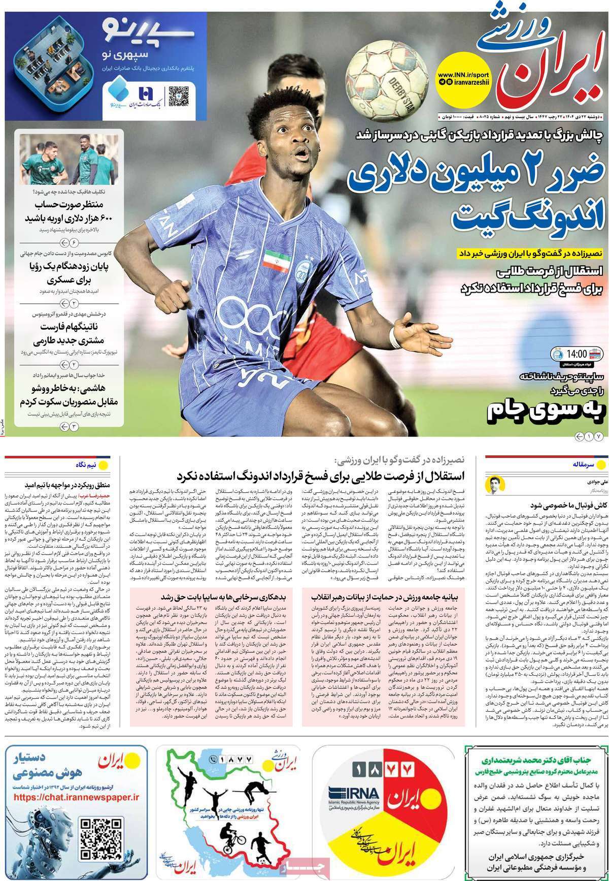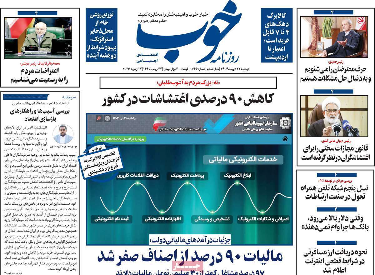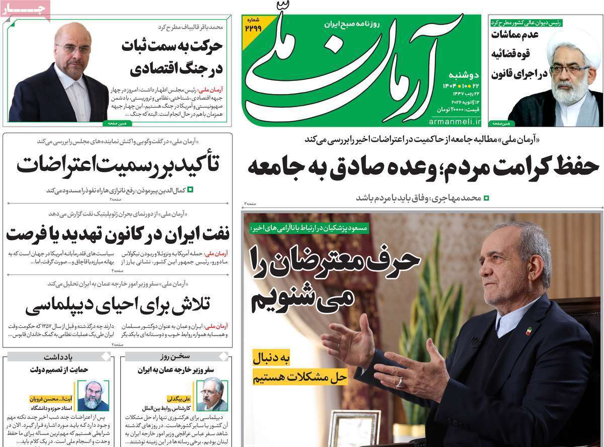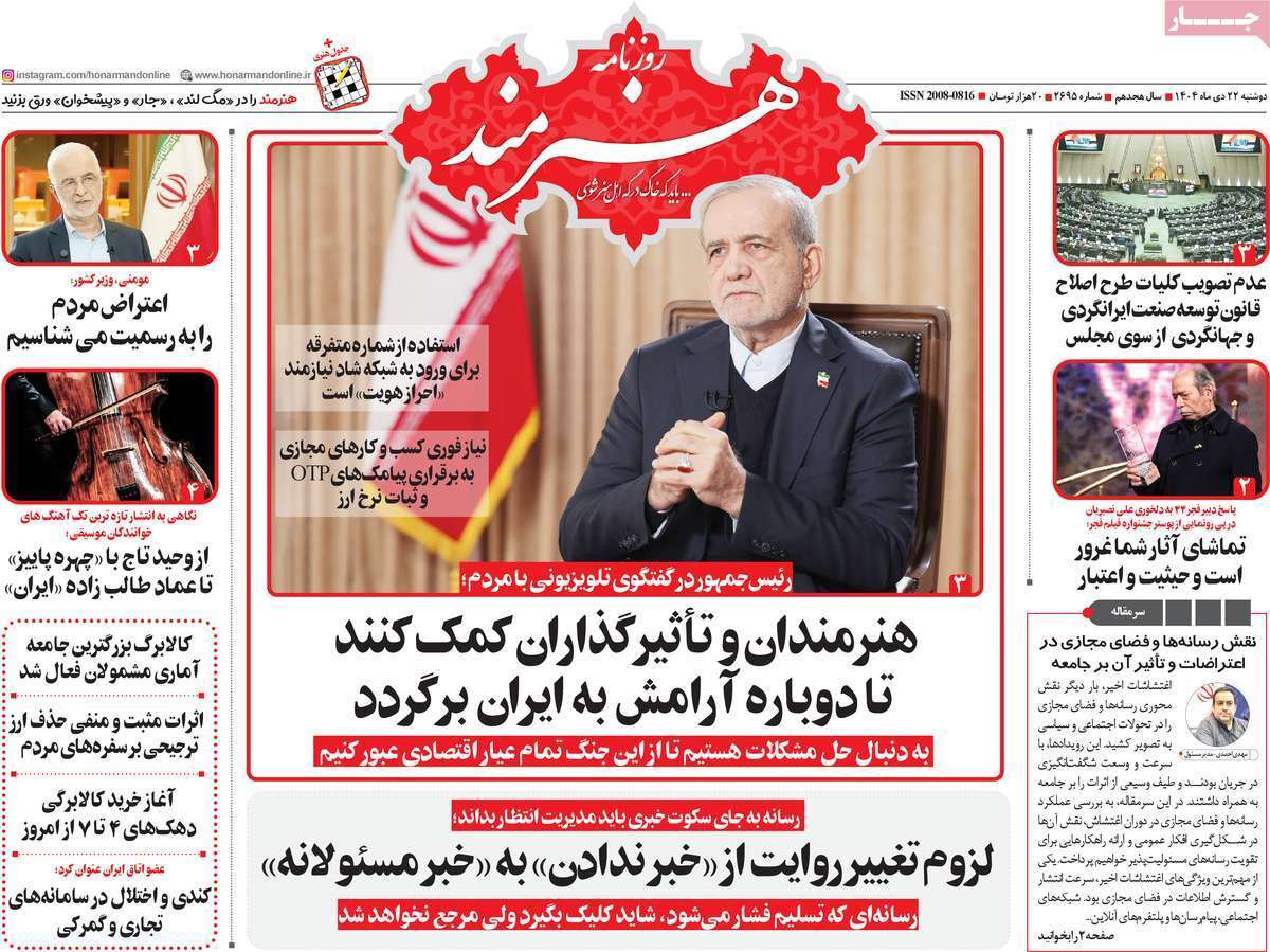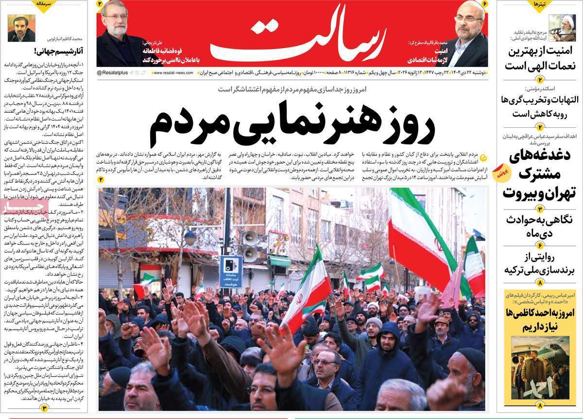صفحات نخست روزنامههای دوشنبه ۲۲ دی ۱۴۰۴