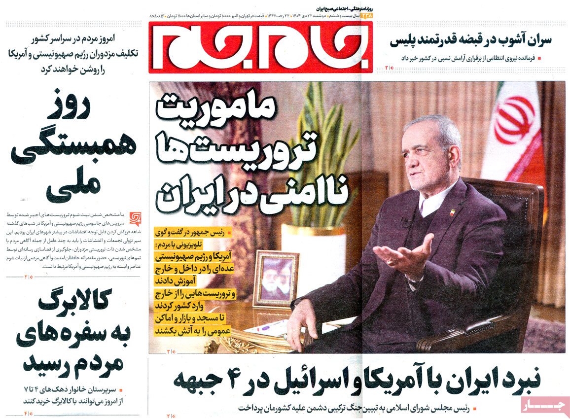 صفحه اول جراید کشور