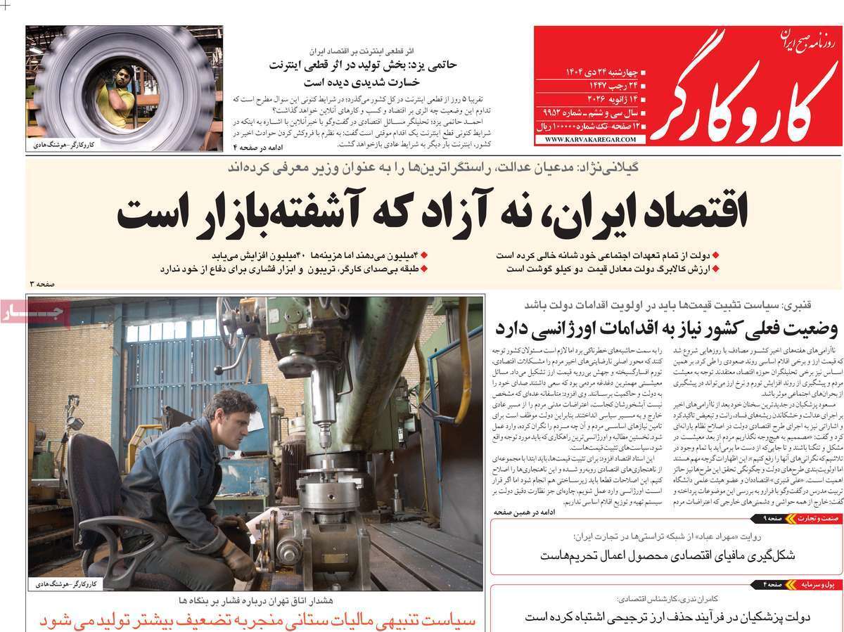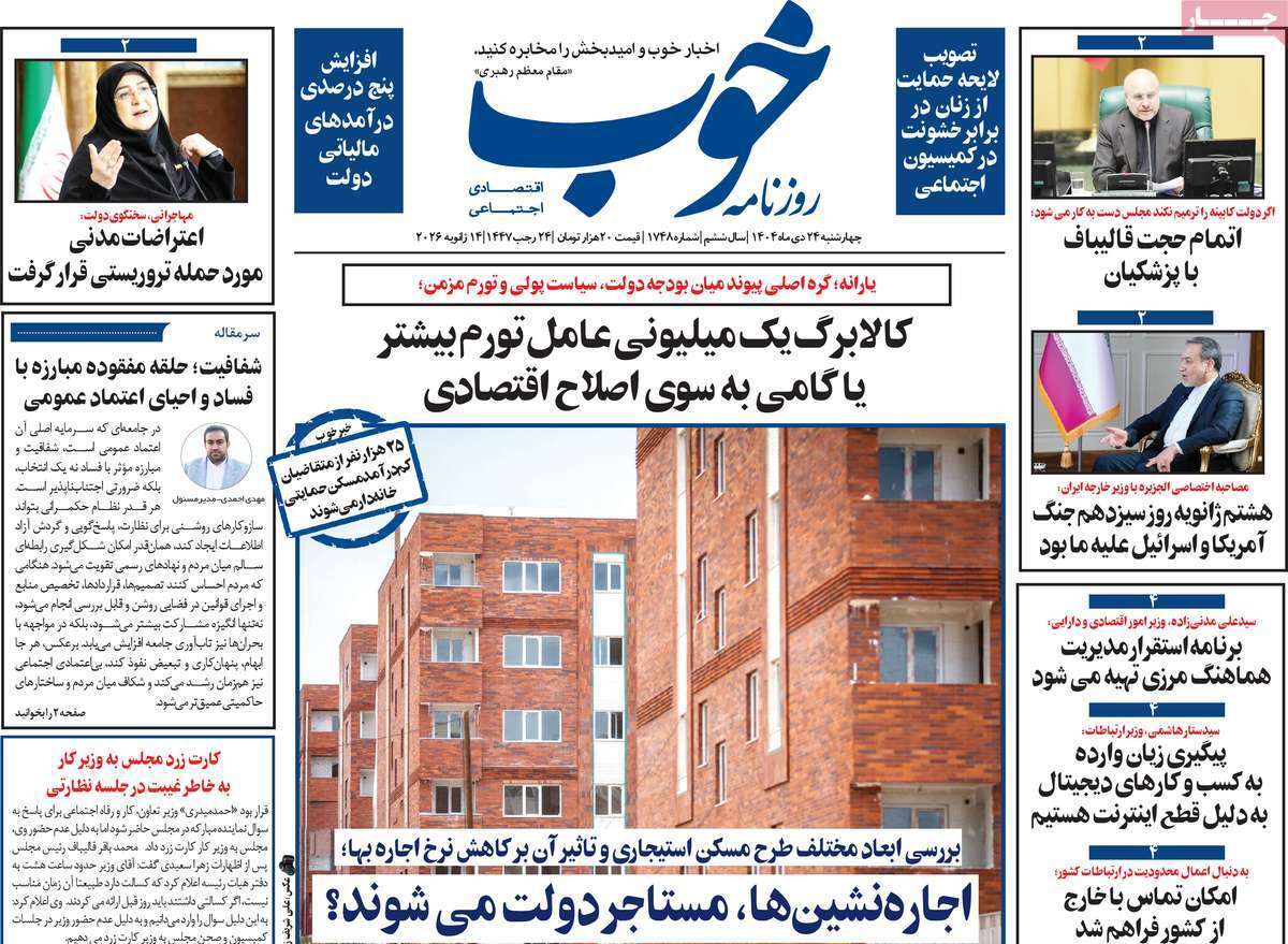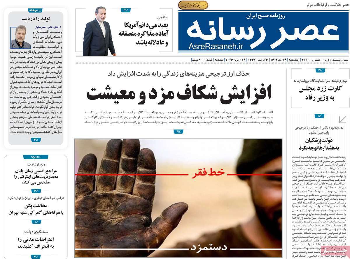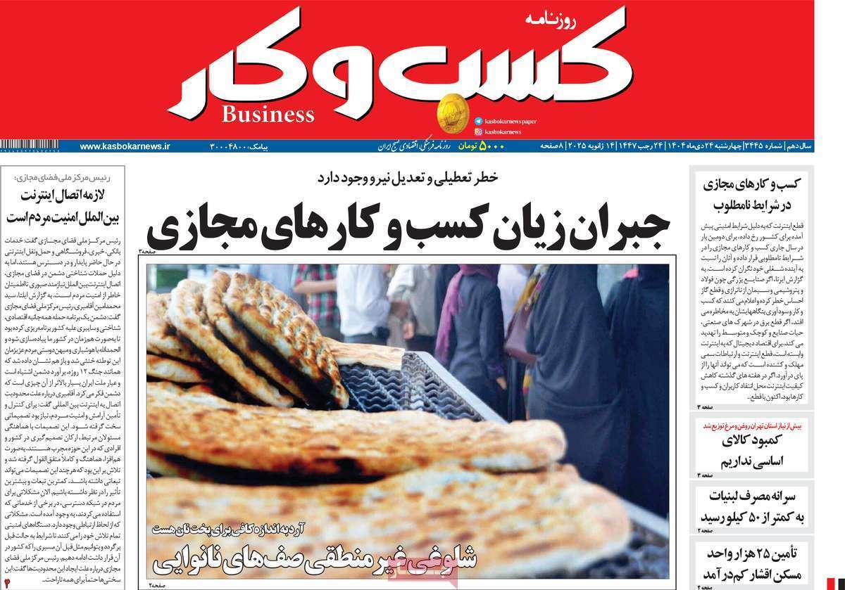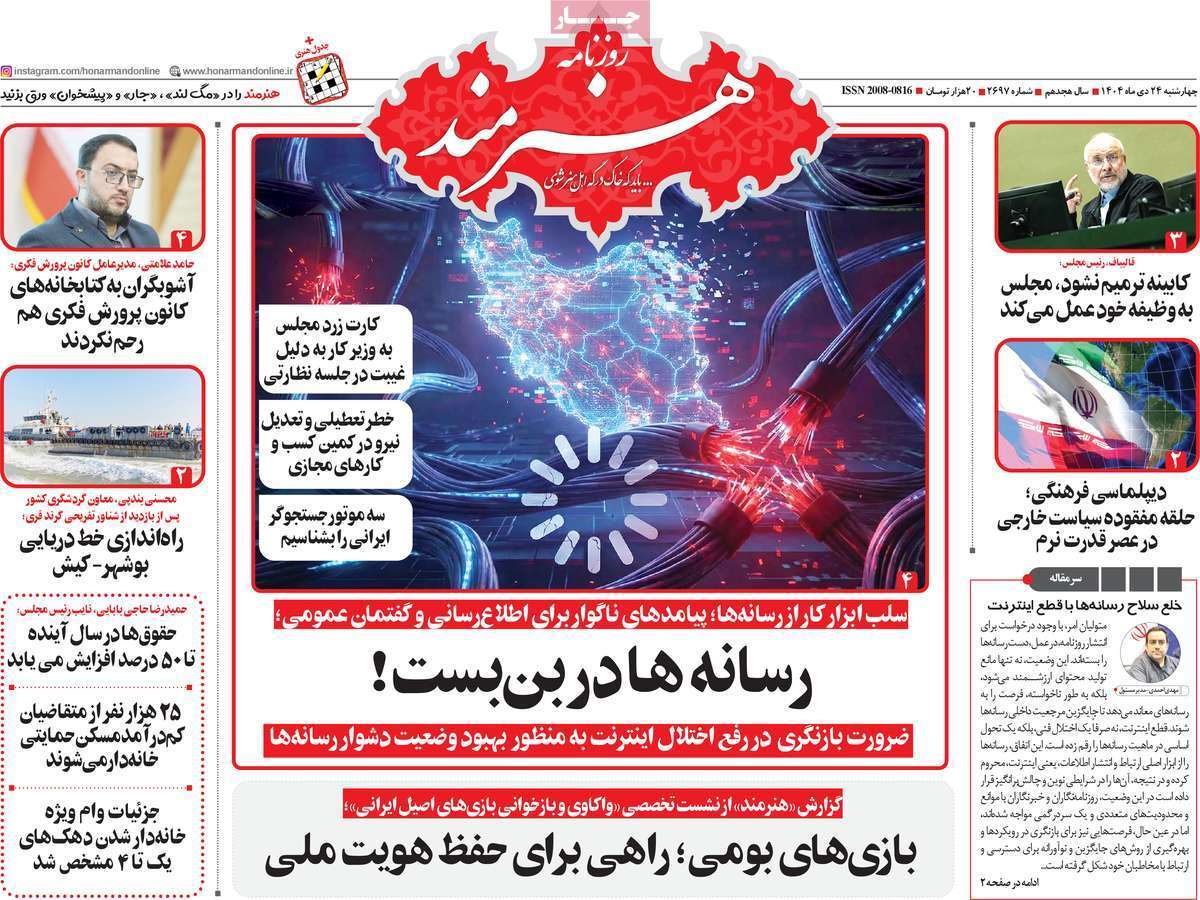 صفحات نخست روزنامههای چهارشنبه ۲۴ دی ۱۴۰۴