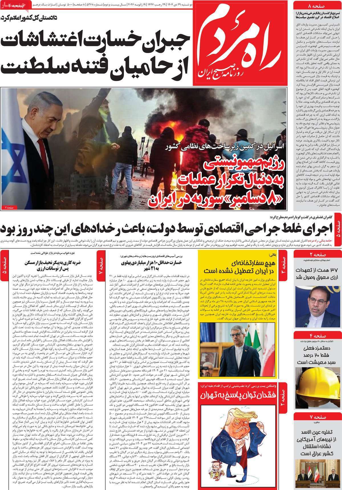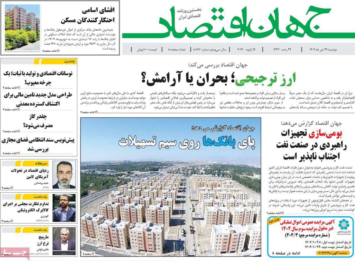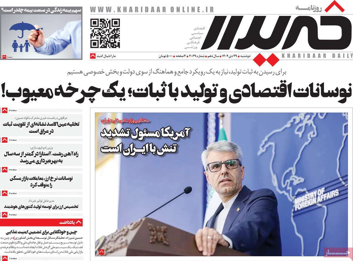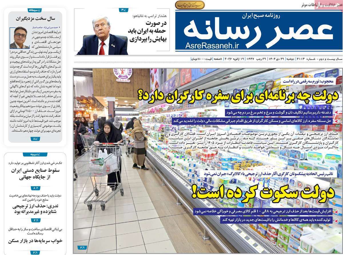 صفحات نخست روزنامههای دوشنبه ۲۹ دی ۱۴۰۴
