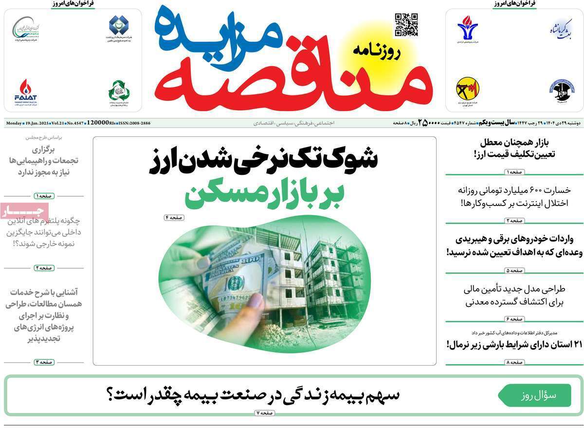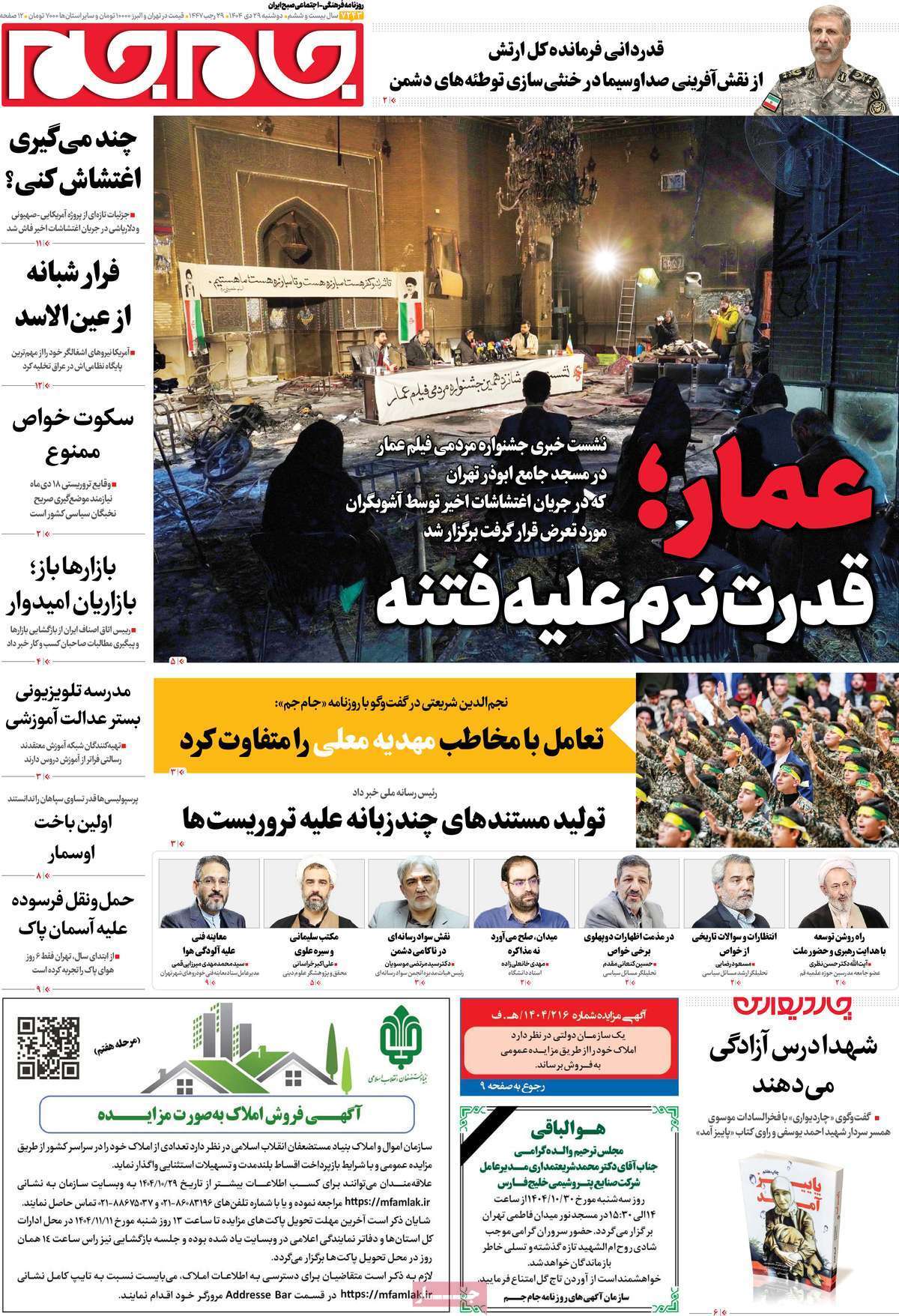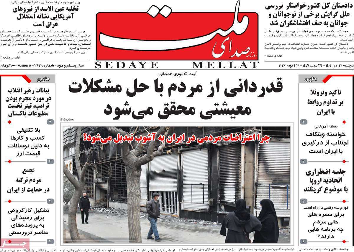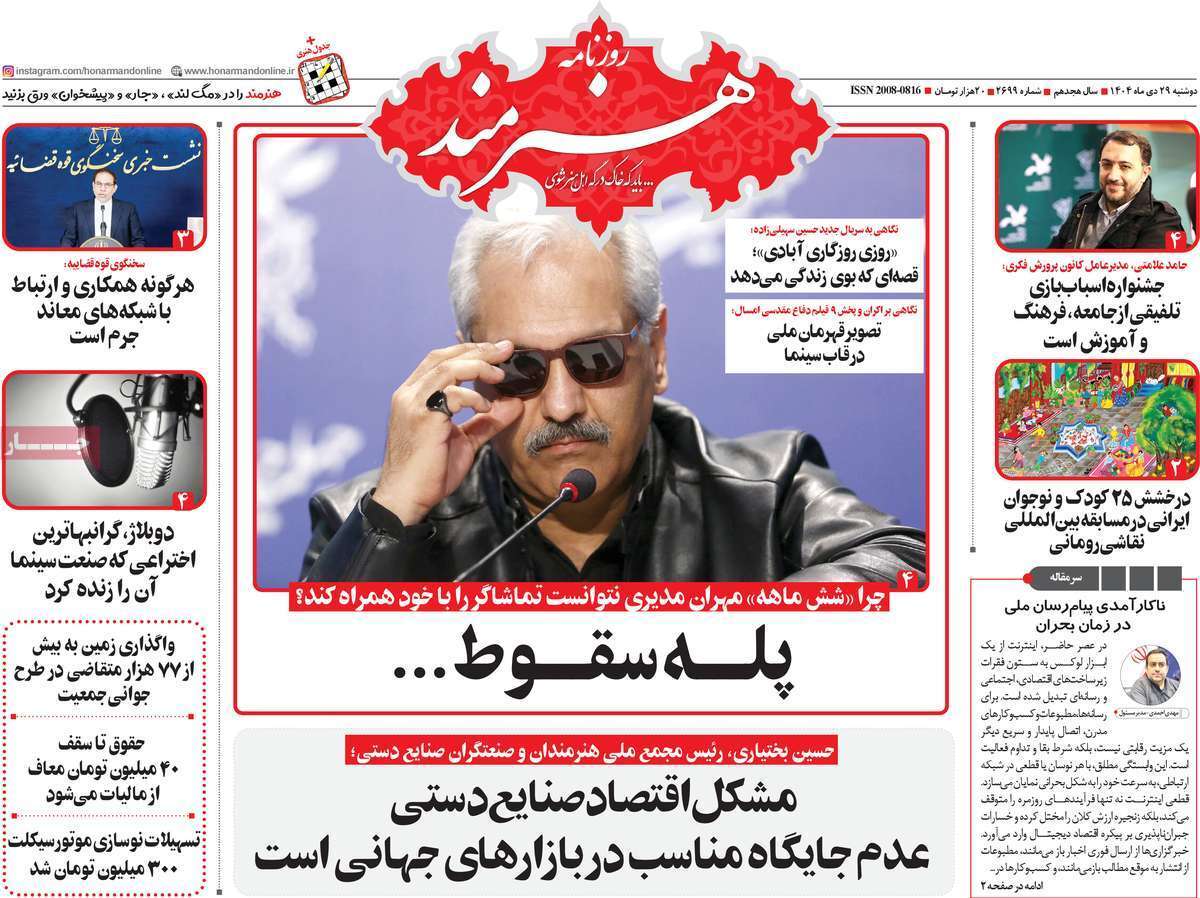 صفحات نخست روزنامههای دوشنبه ۲۹ دی ۱۴۰۴