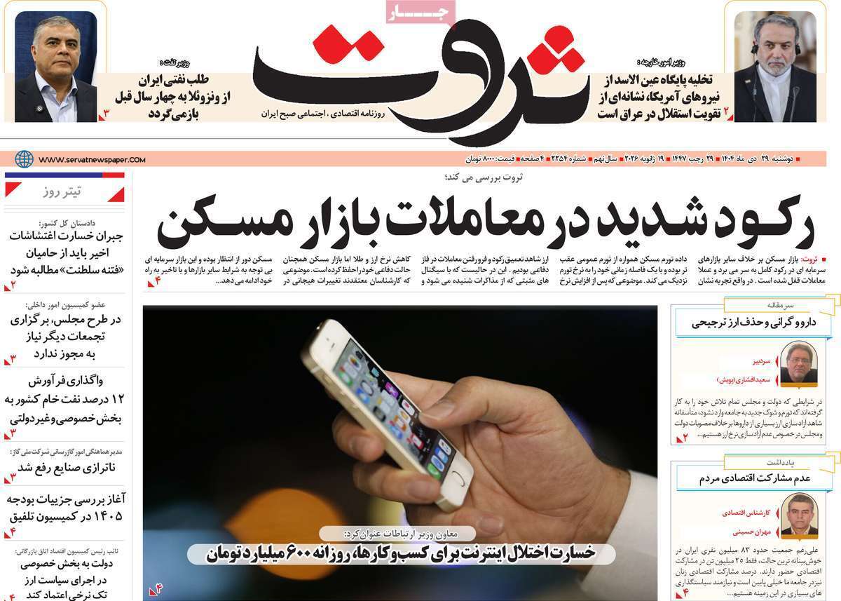 صفحات نخست روزنامههای چهارشنبه ۸ بهمن ۱۴۰۴