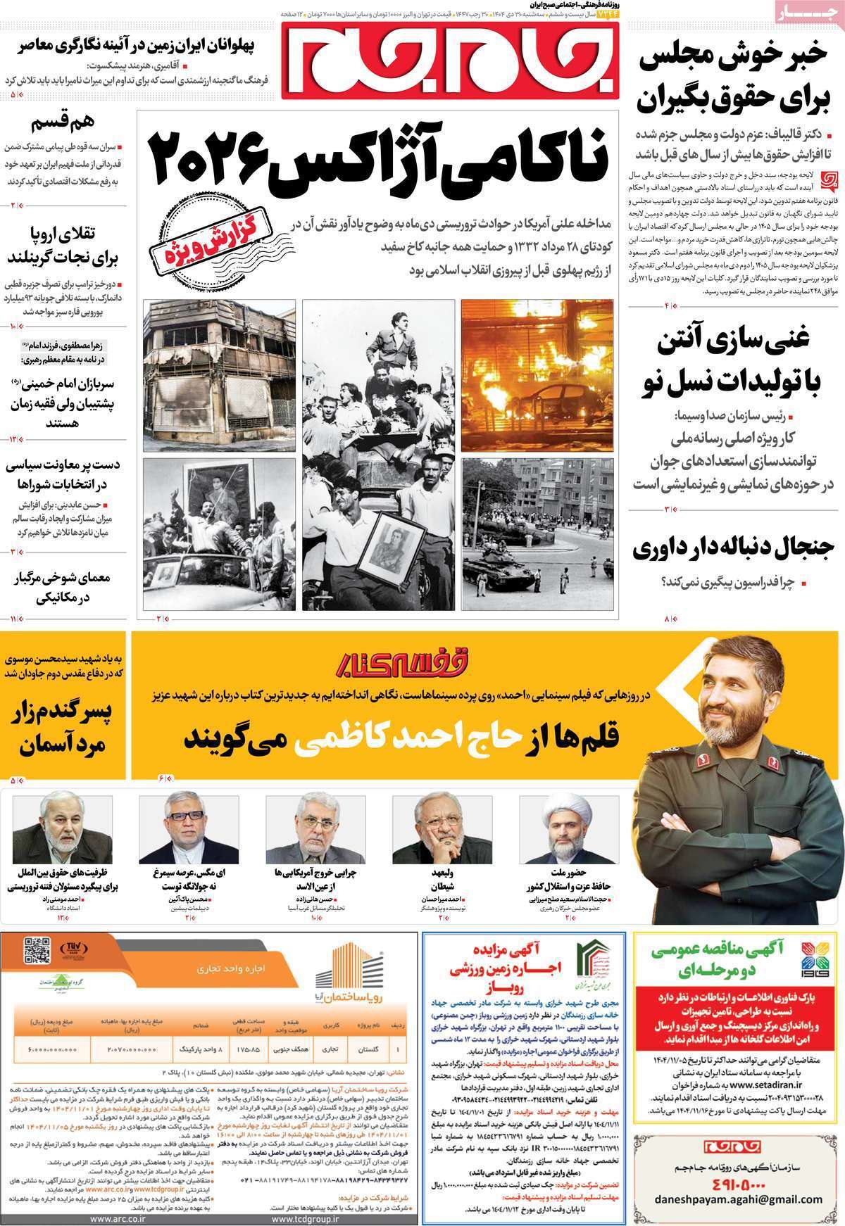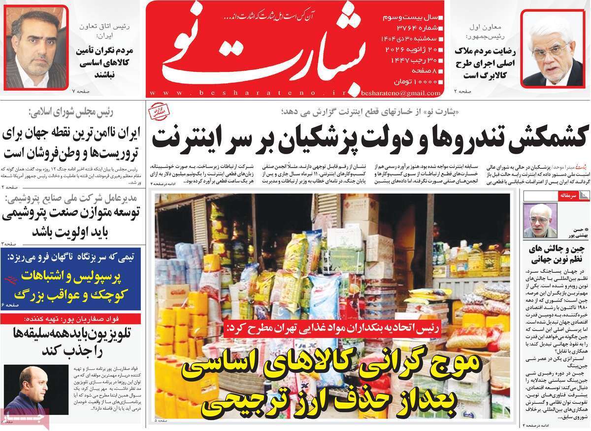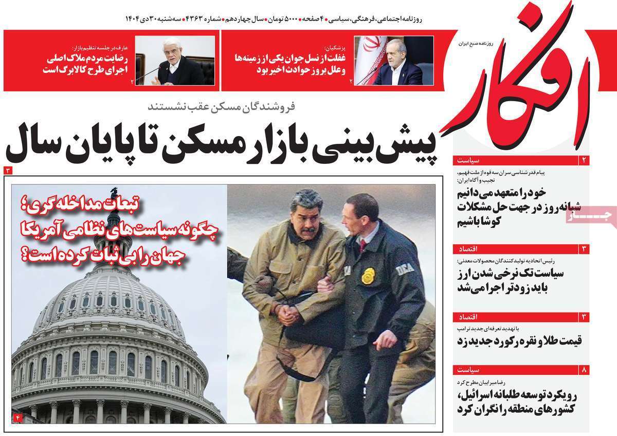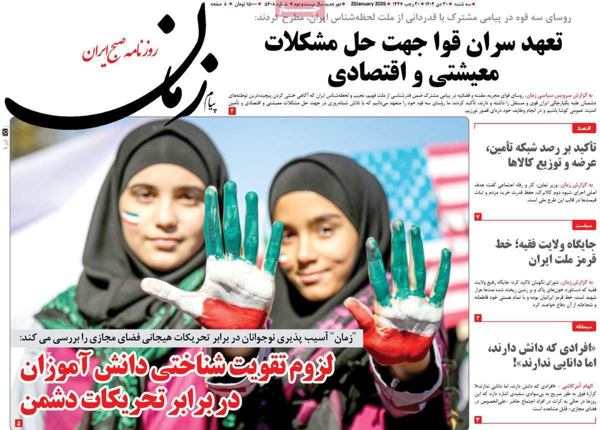 صفحات نخست روزنامههای سهشنبه ۳۰ دی ۱۴۰۴ را که به موضوعاتی، چون وحدت عملی برای حل مشکلات مردم، پس لرزه شبهجنگ، اعتراف ترامپ به عملیات تروریستی در ایران و مهمترین رویدادهای ورزشی پرداختهاند؛ مشاهده میکنید.