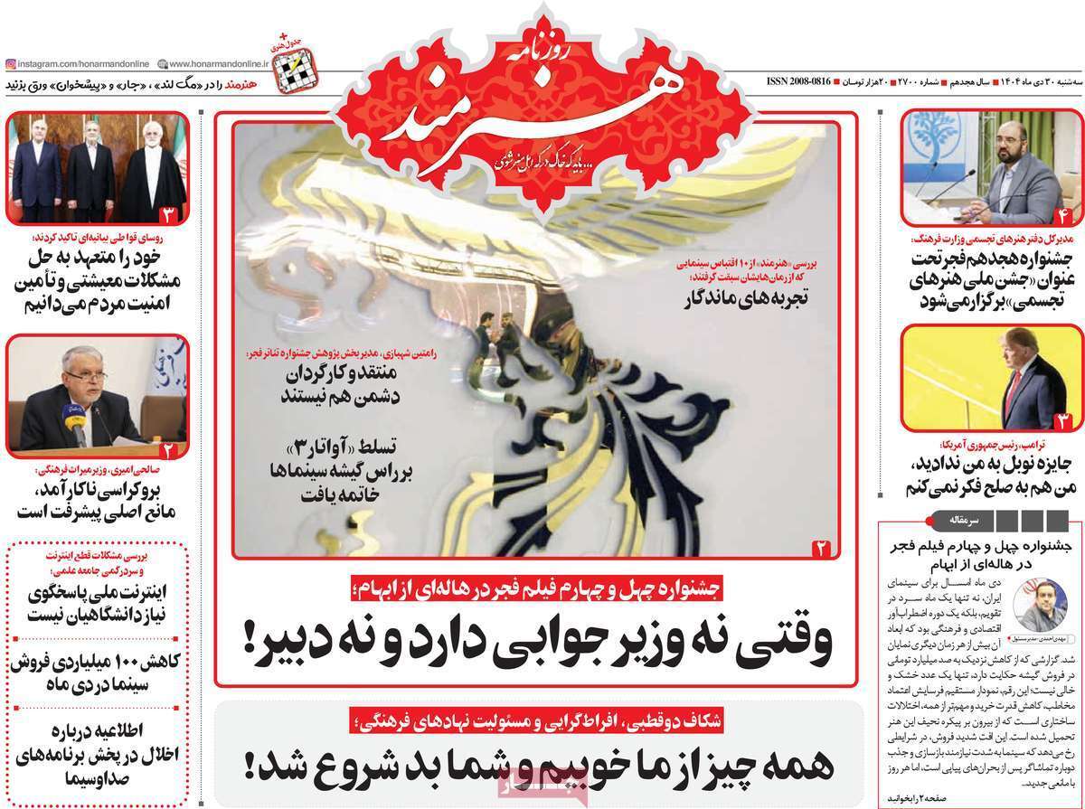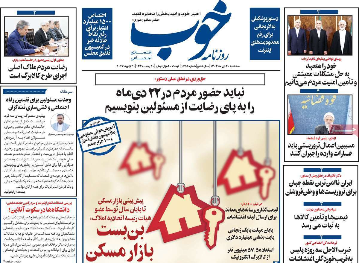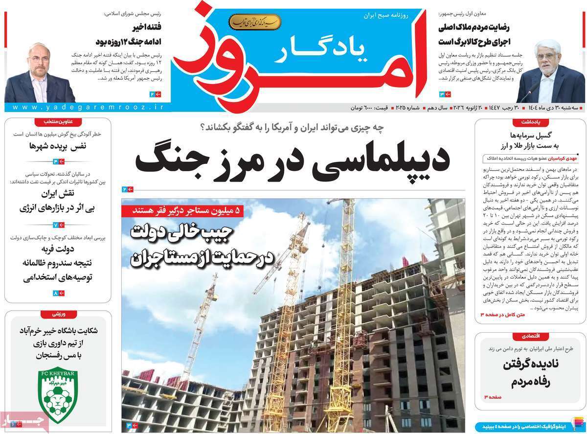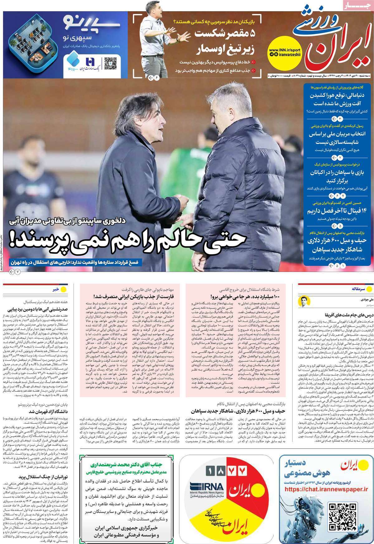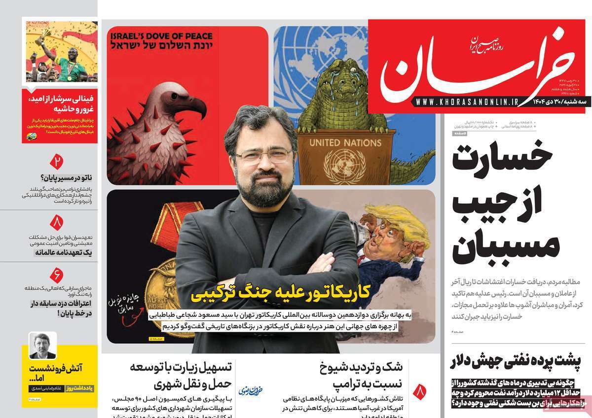 صفحات نخست روزنامههای سهشنبه ۳۰ دی ۱۴۰۴