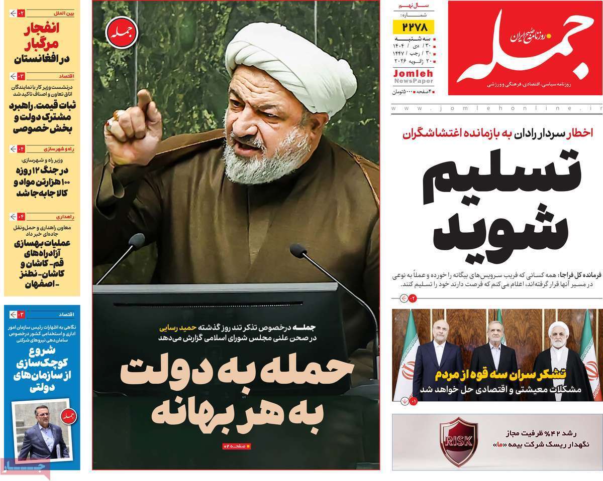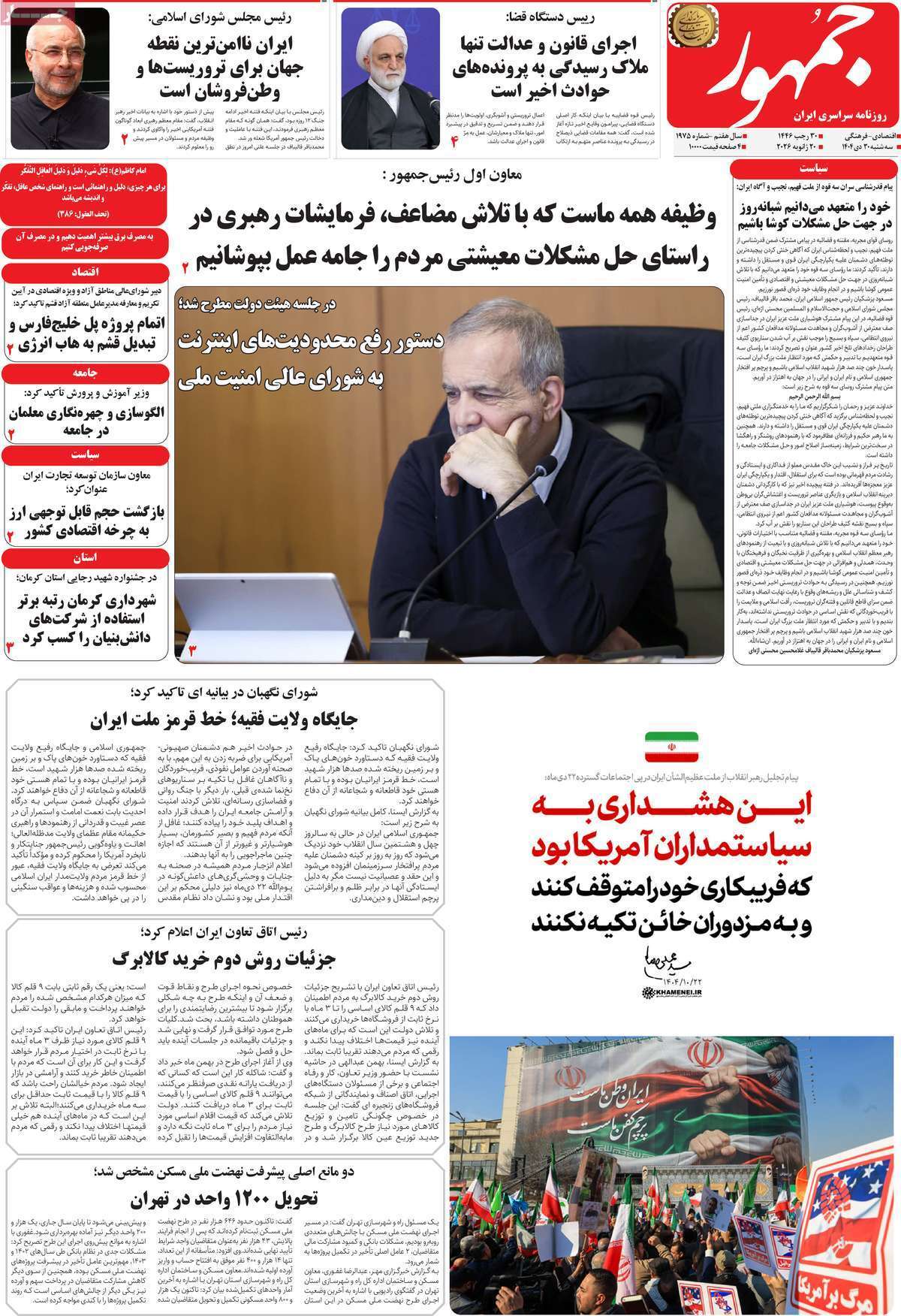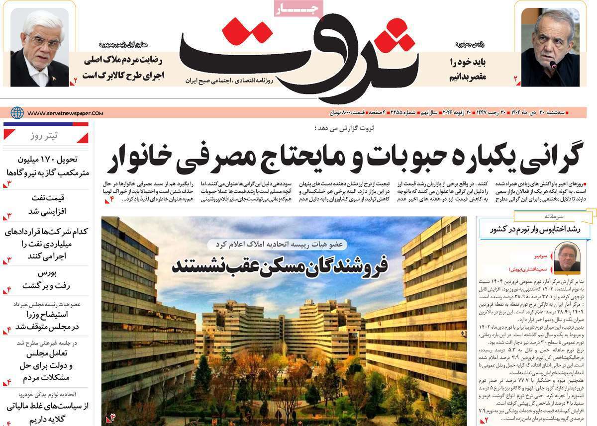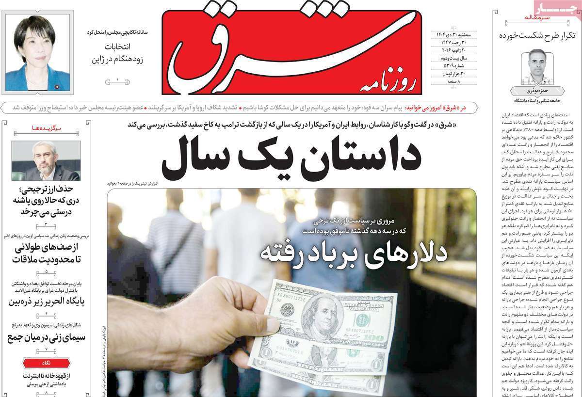 صفحات نخست روزنامههای سهشنبه ۳۰ دی ۱۴۰۴