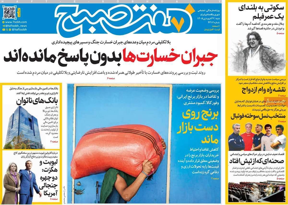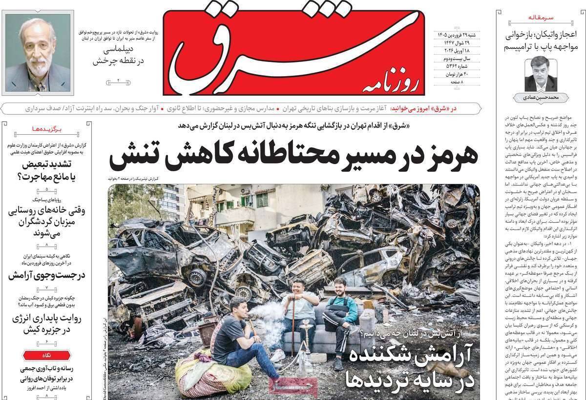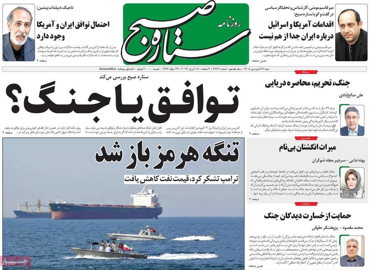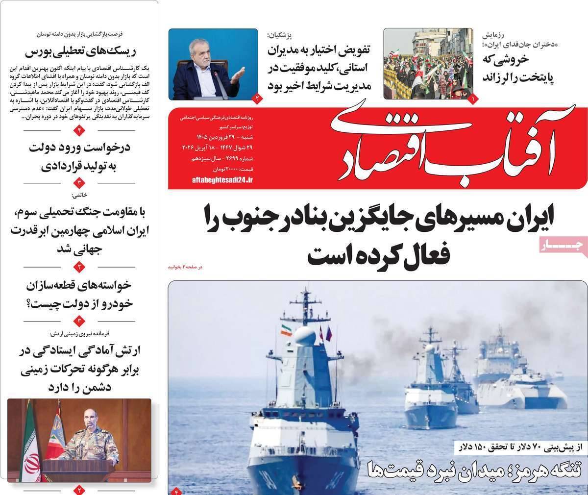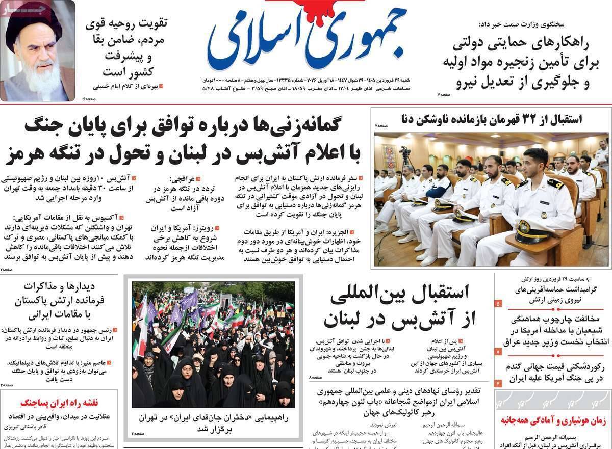صفحات نخست روزنامههای شنبه ۲۹ فروردین ۱۴۰۵
