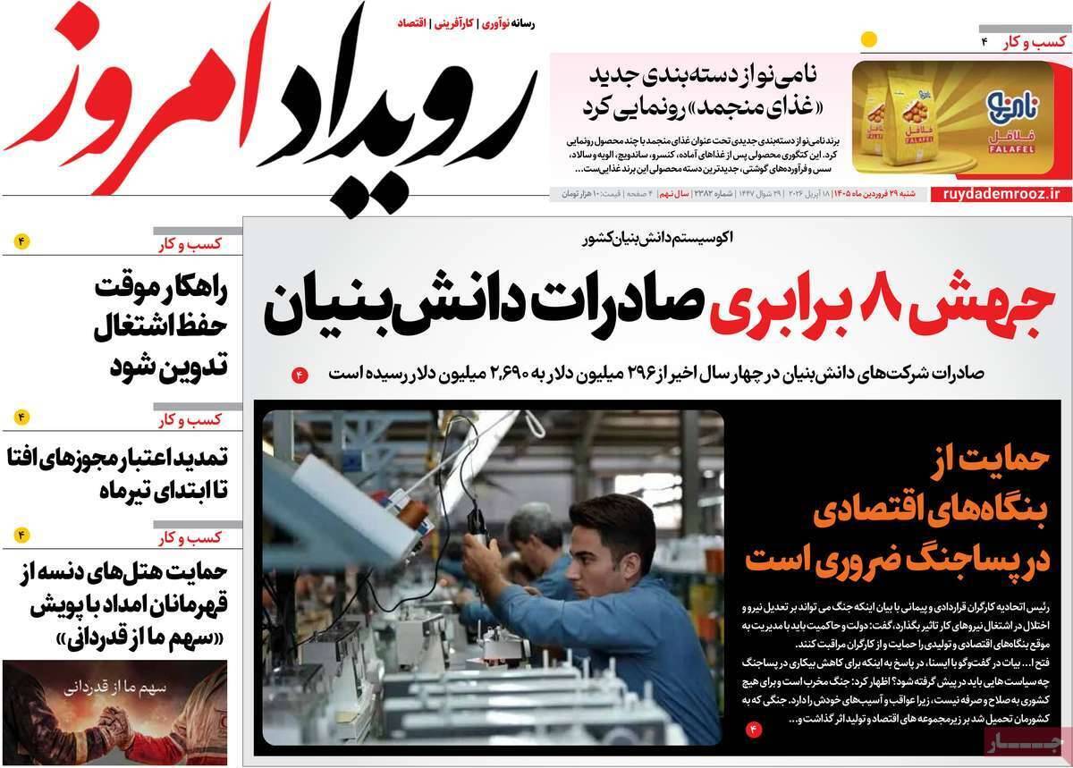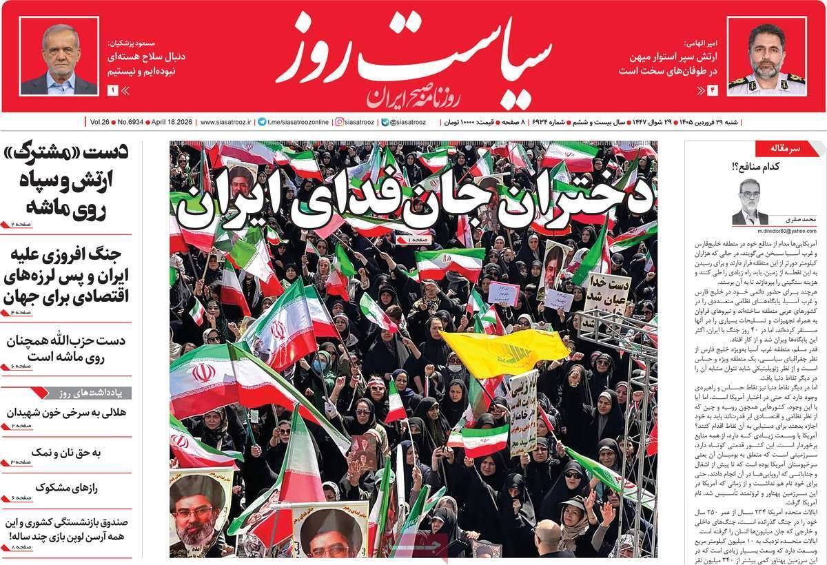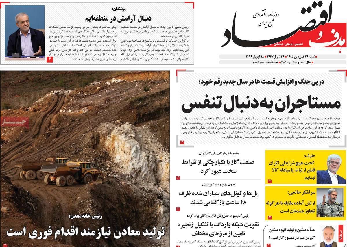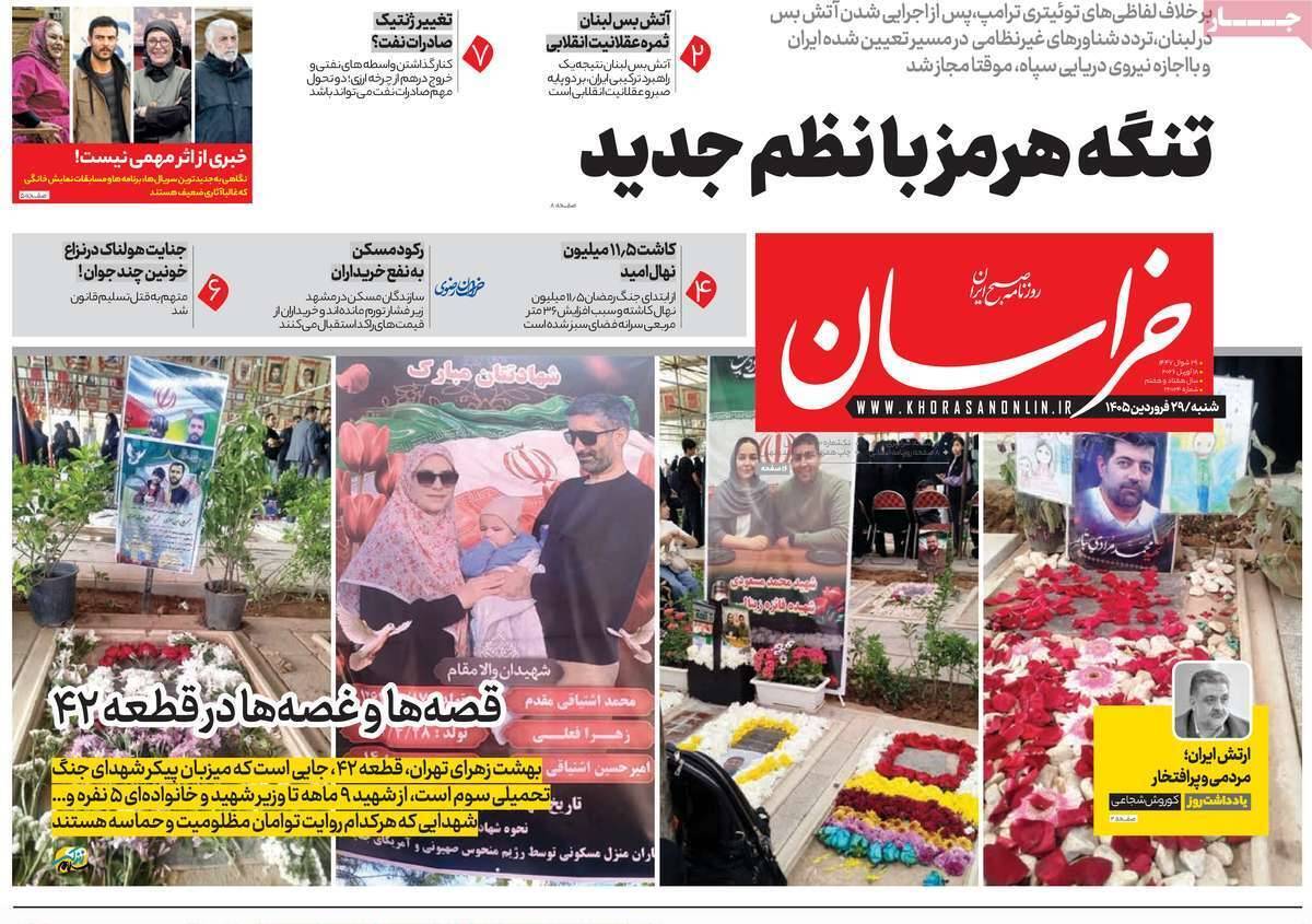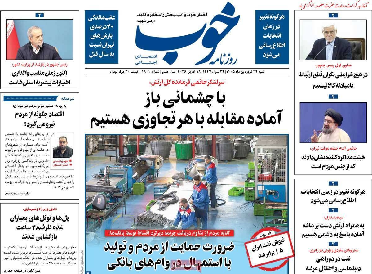 صفحات نخست روزنامههای شنبه ۲۹ فروردین ۱۴۰۵