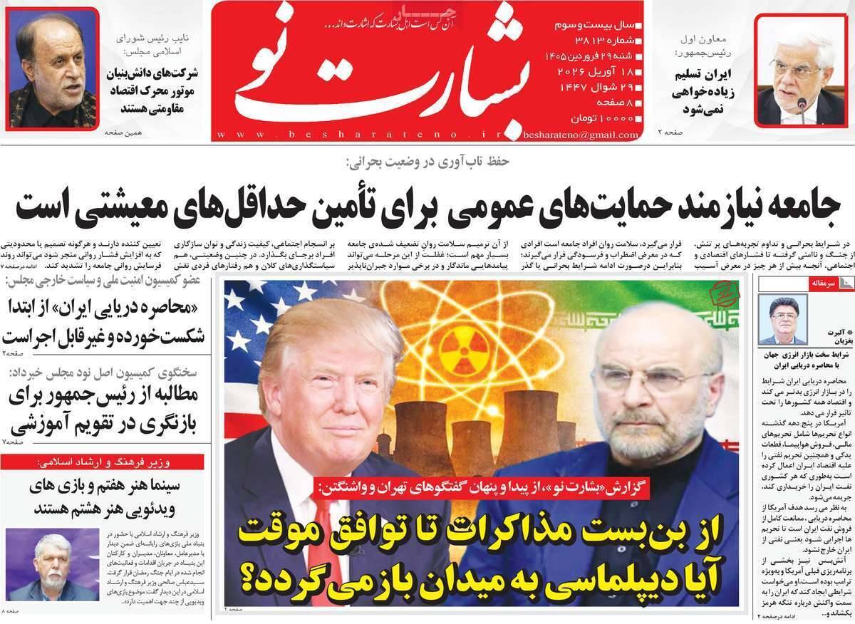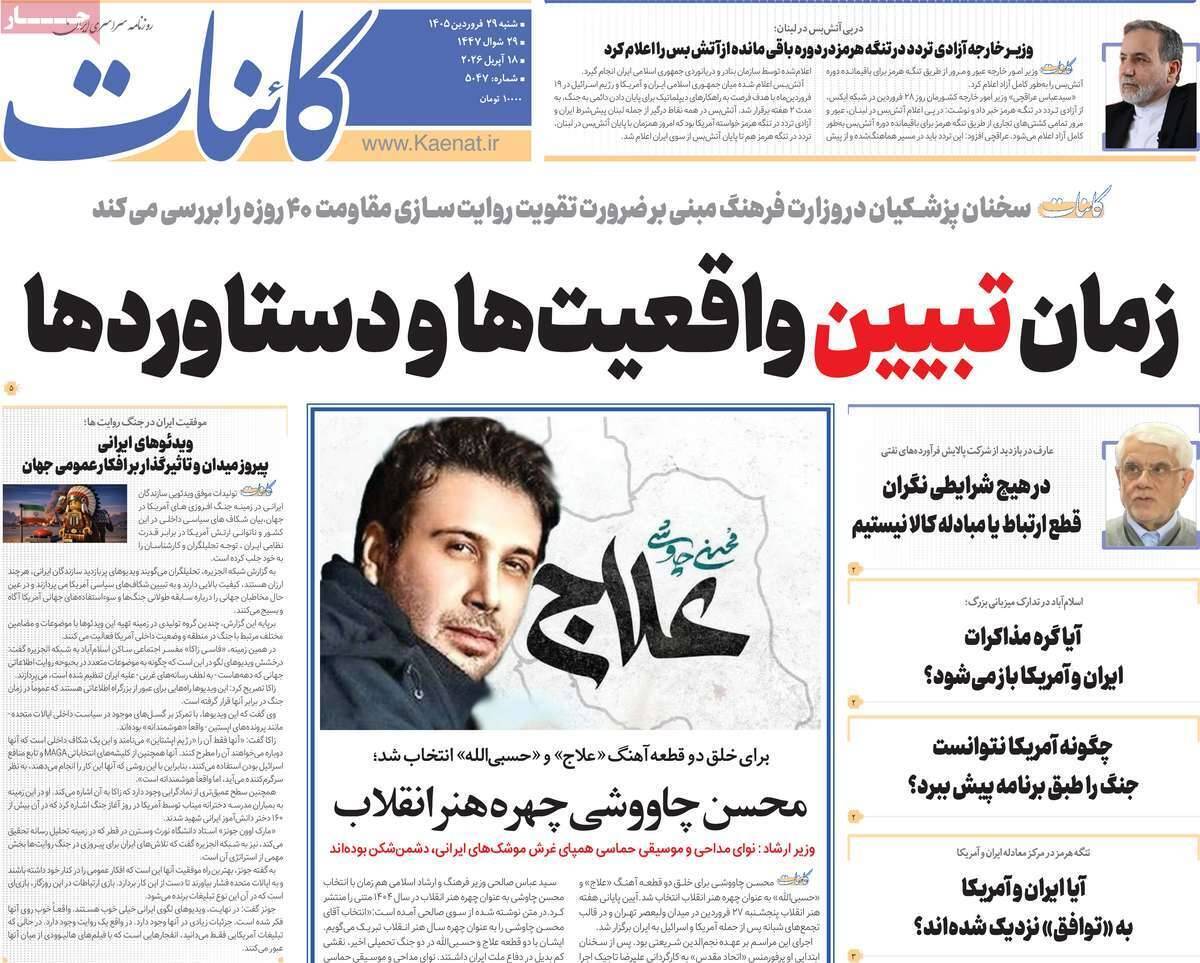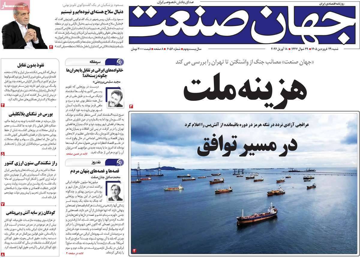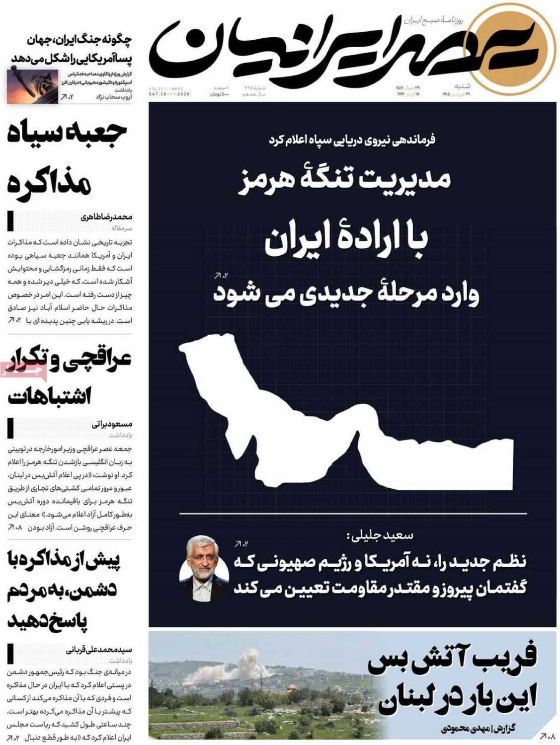 صفحات نخست روزنامههای شنبه ۲۹ فروردین ۱۴۰۵